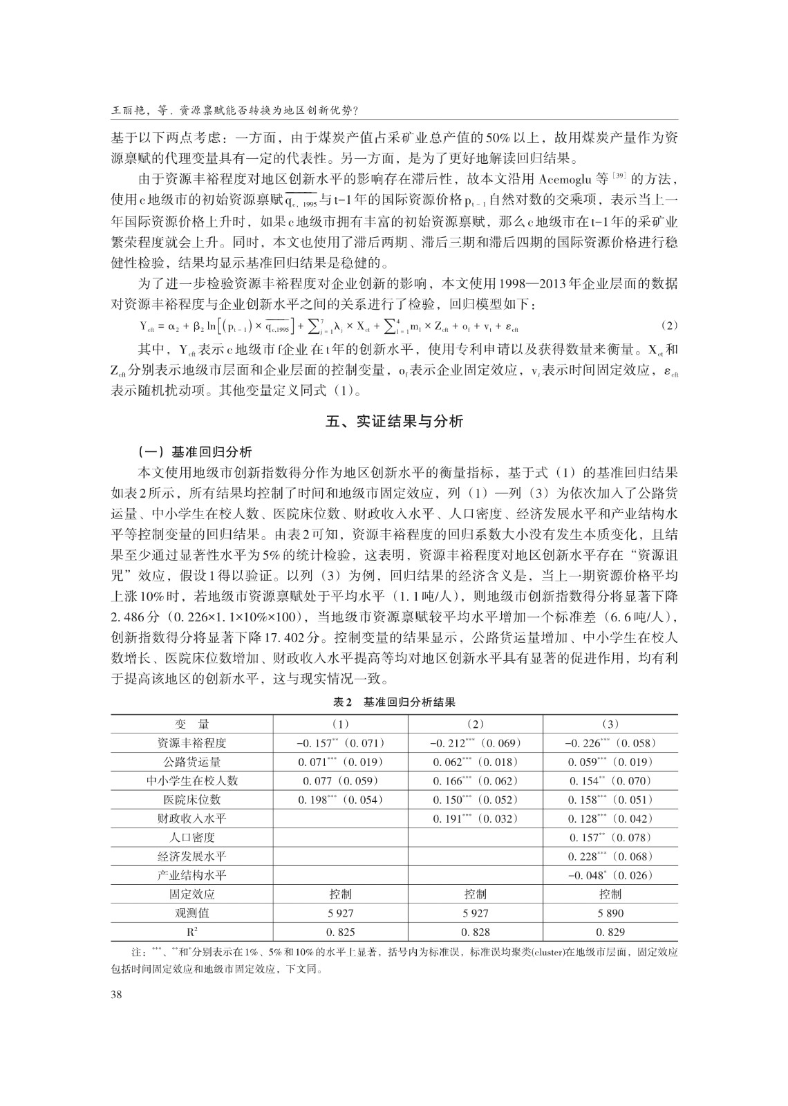 关键词: 资源禀赋;资源型地区;创新水平;资源诅咒;资源性财政收入