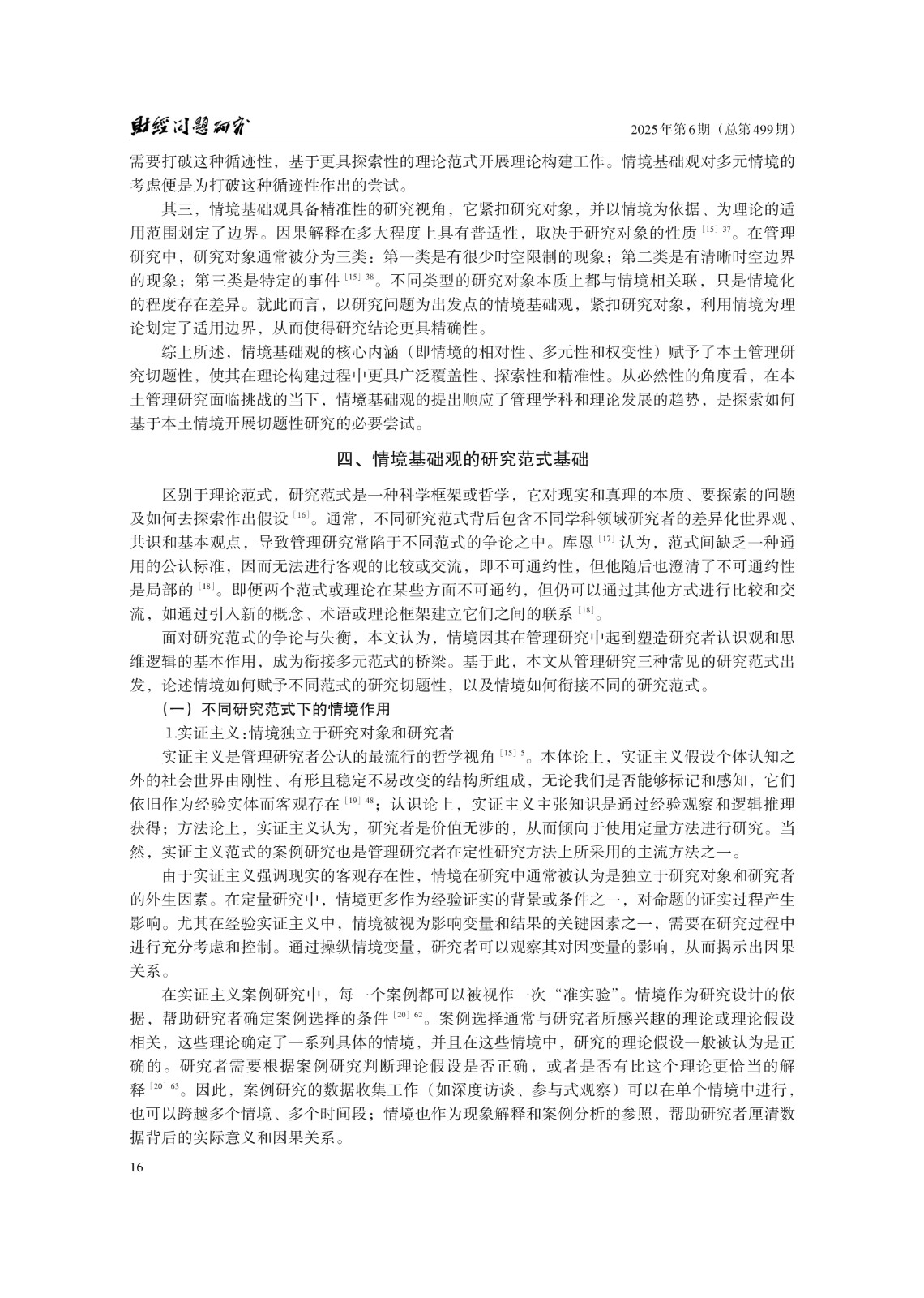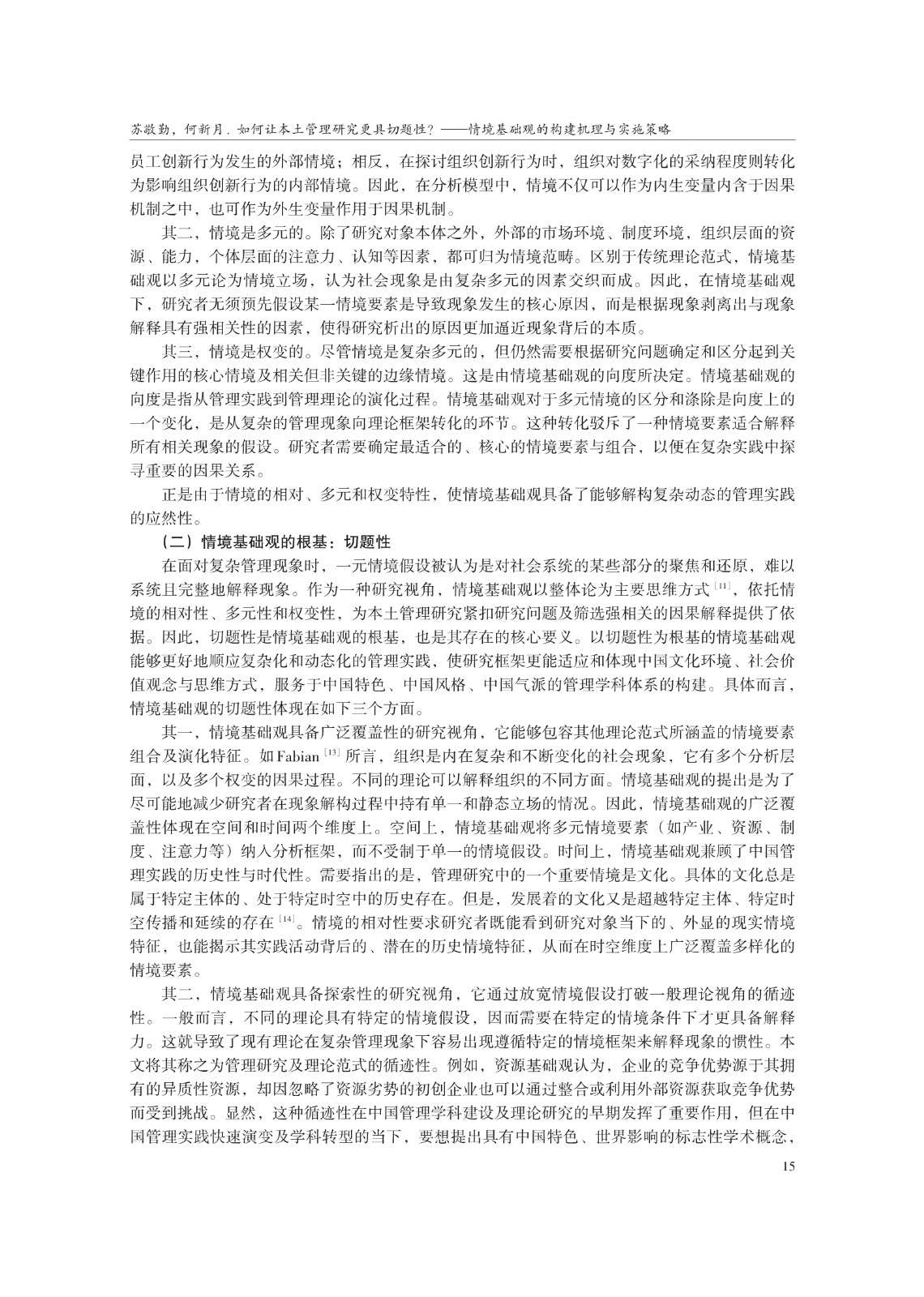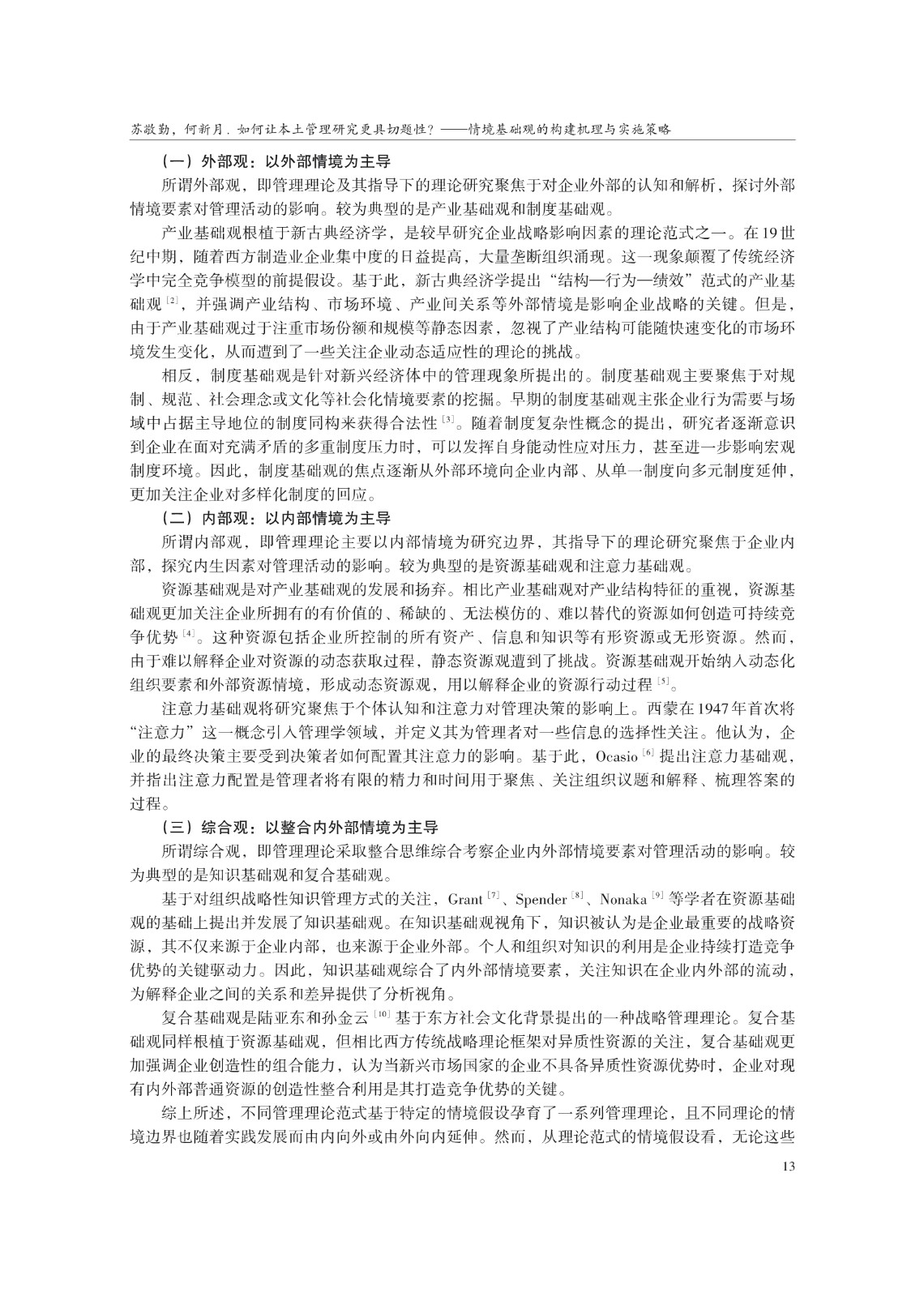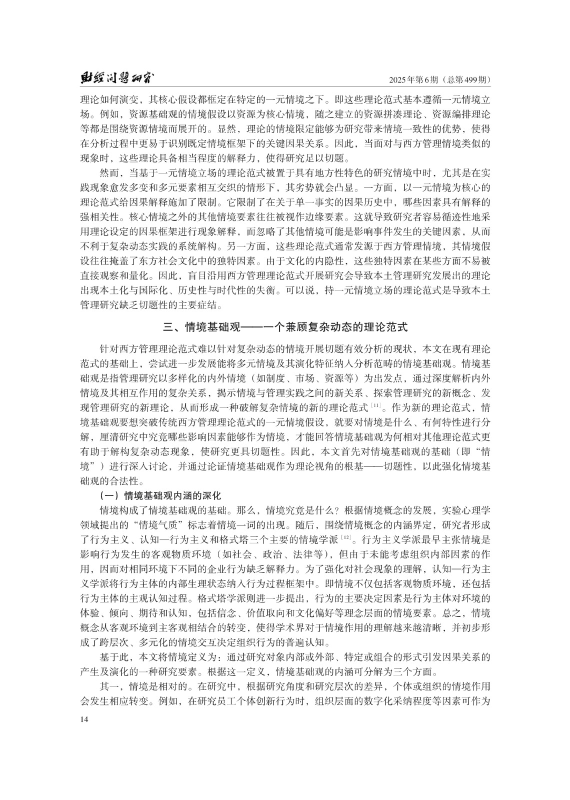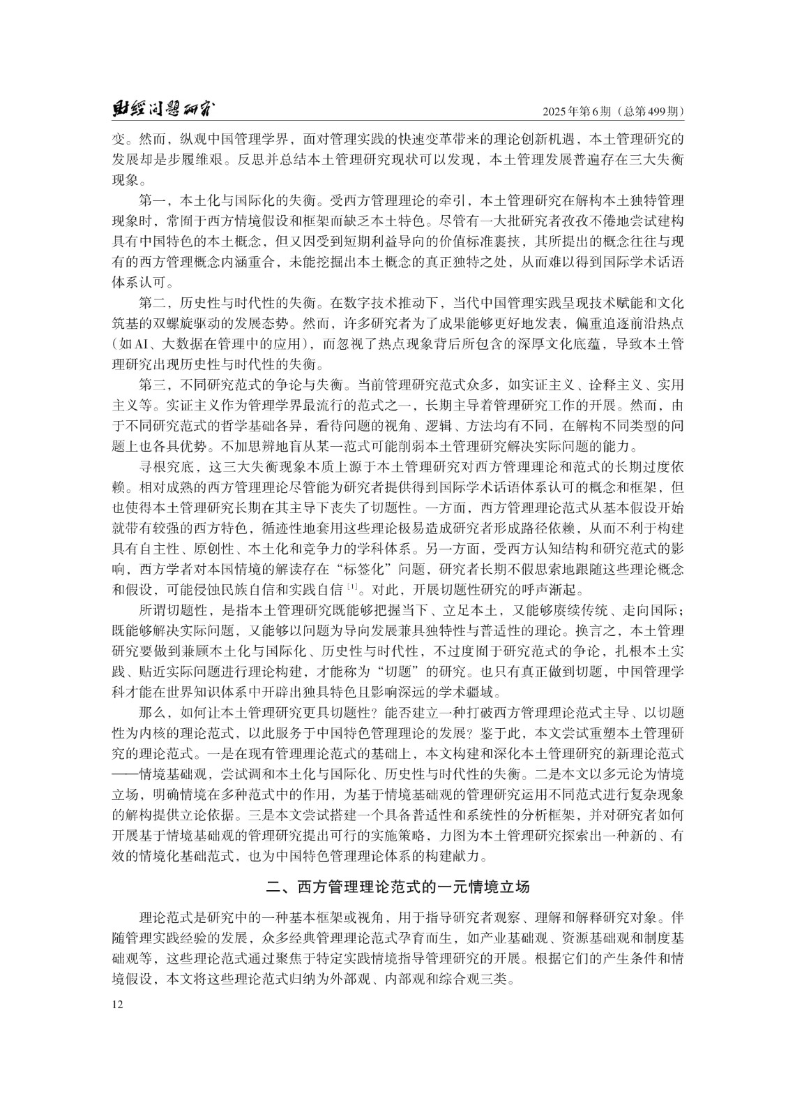 关键词: 本土管理研究;情境基础观;切题性;中国特色管理理论体系