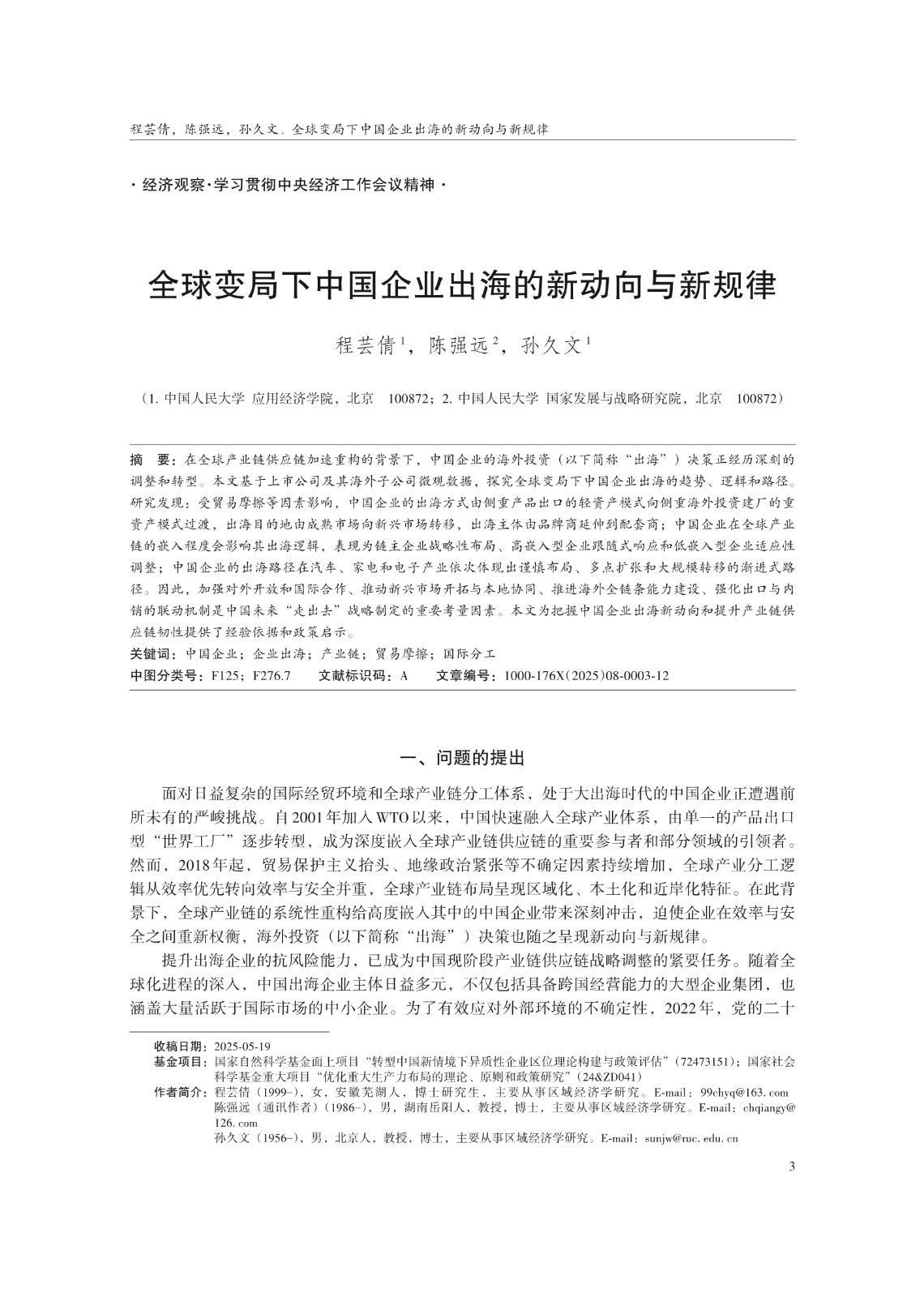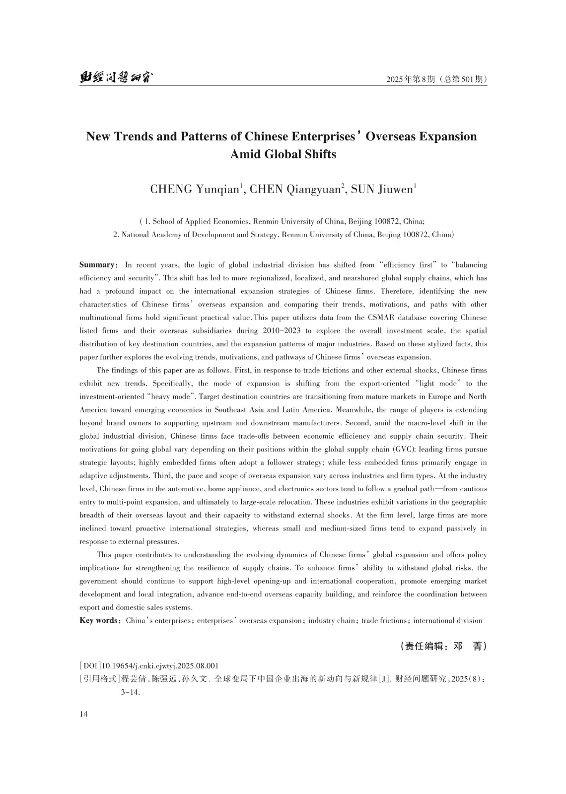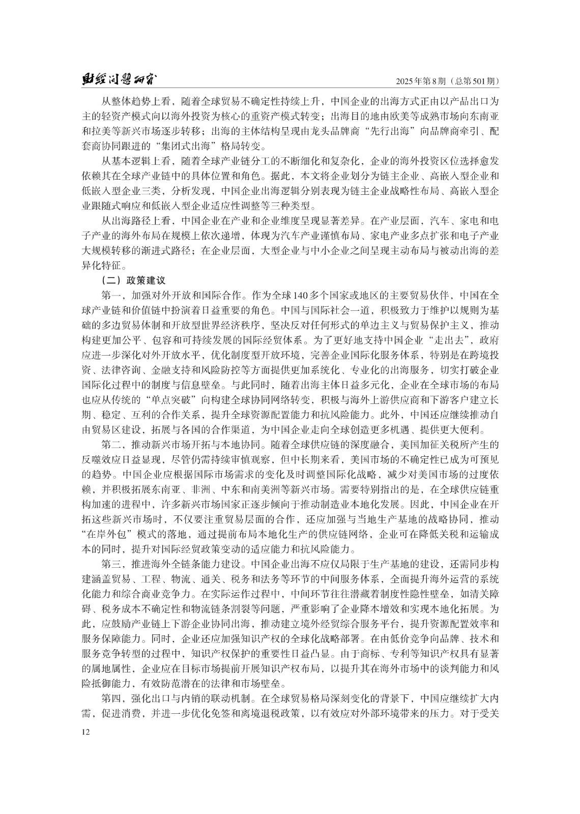 关键词: 中国企业;企业出海;产业链;贸易摩擦;国际分工