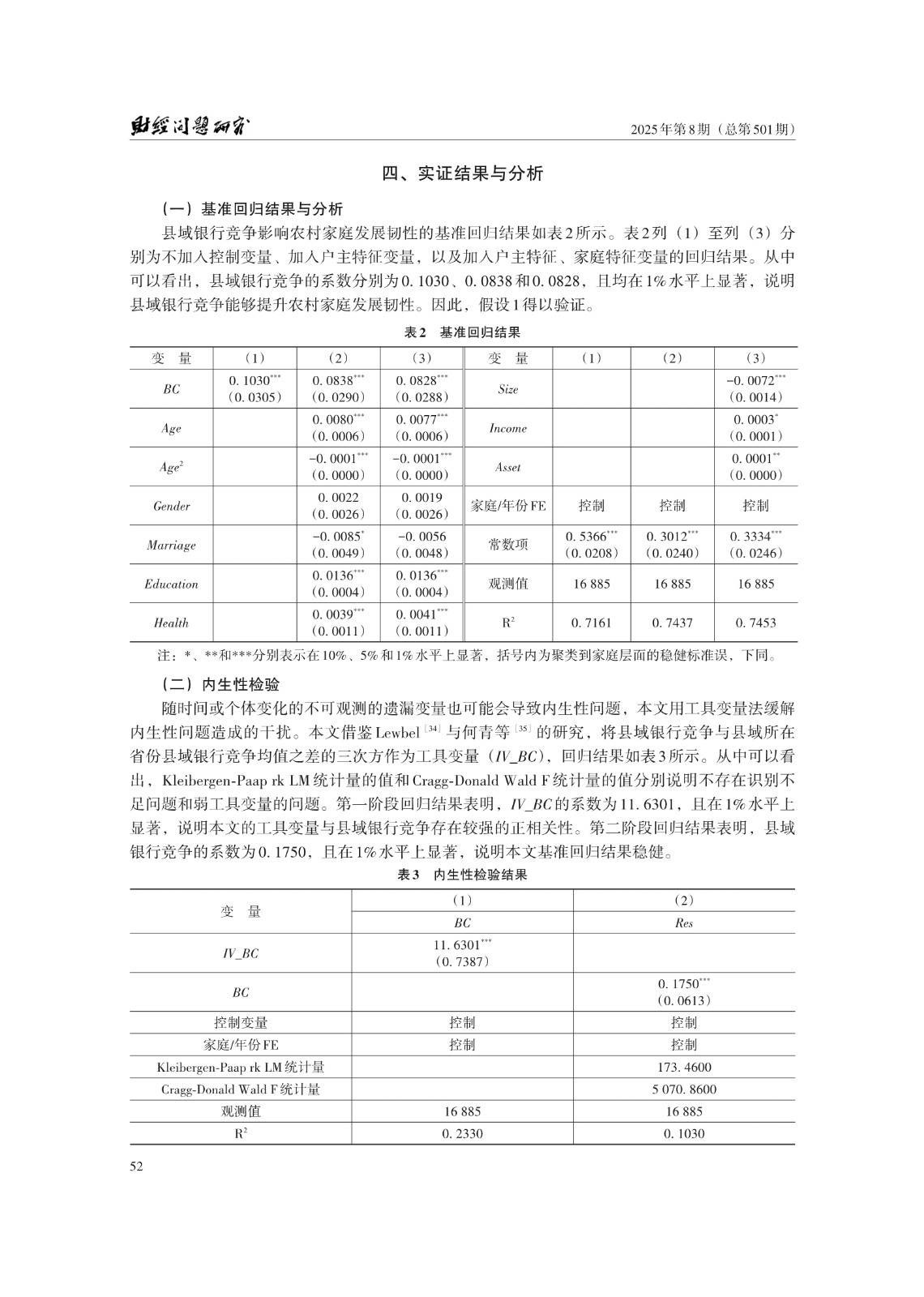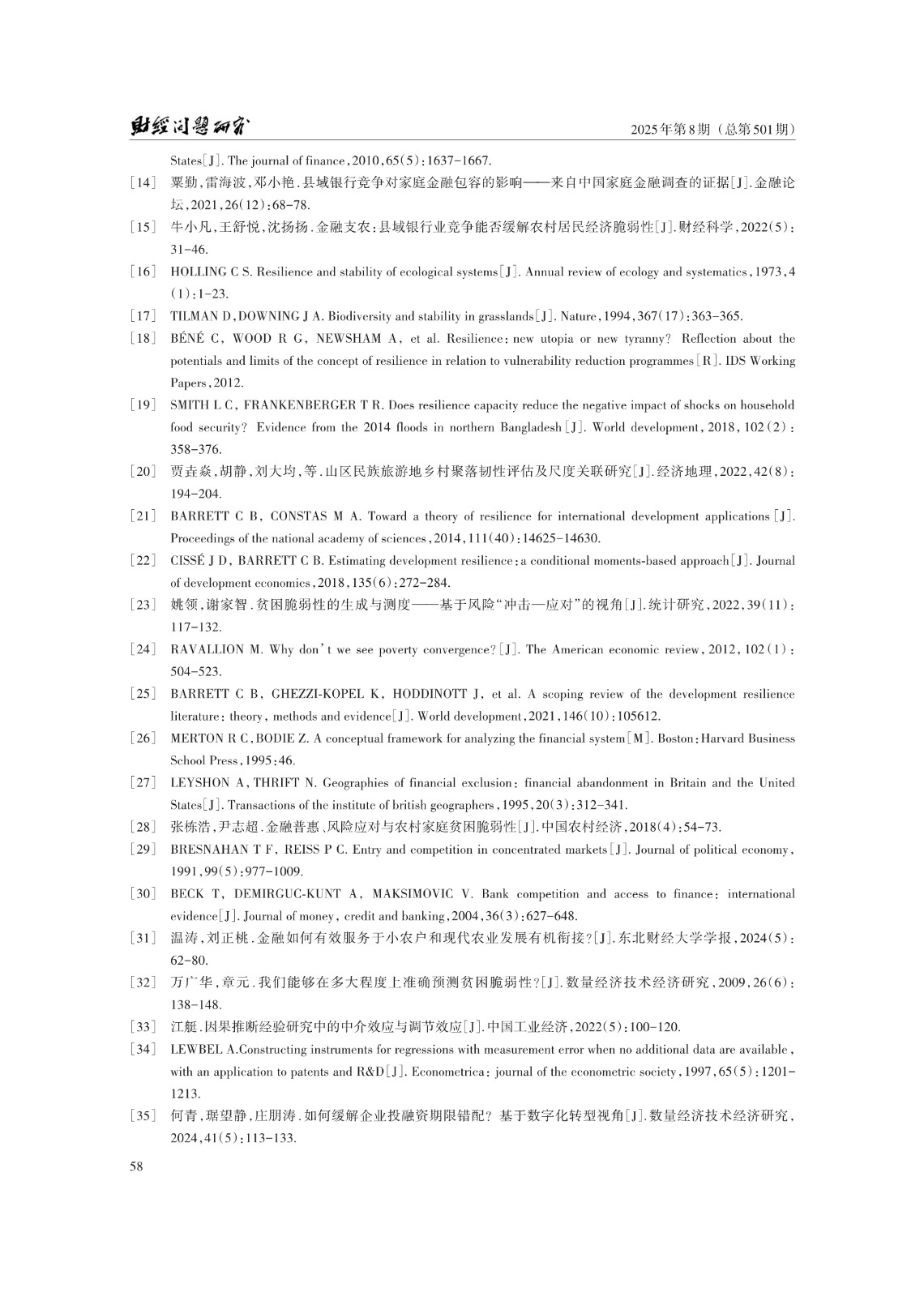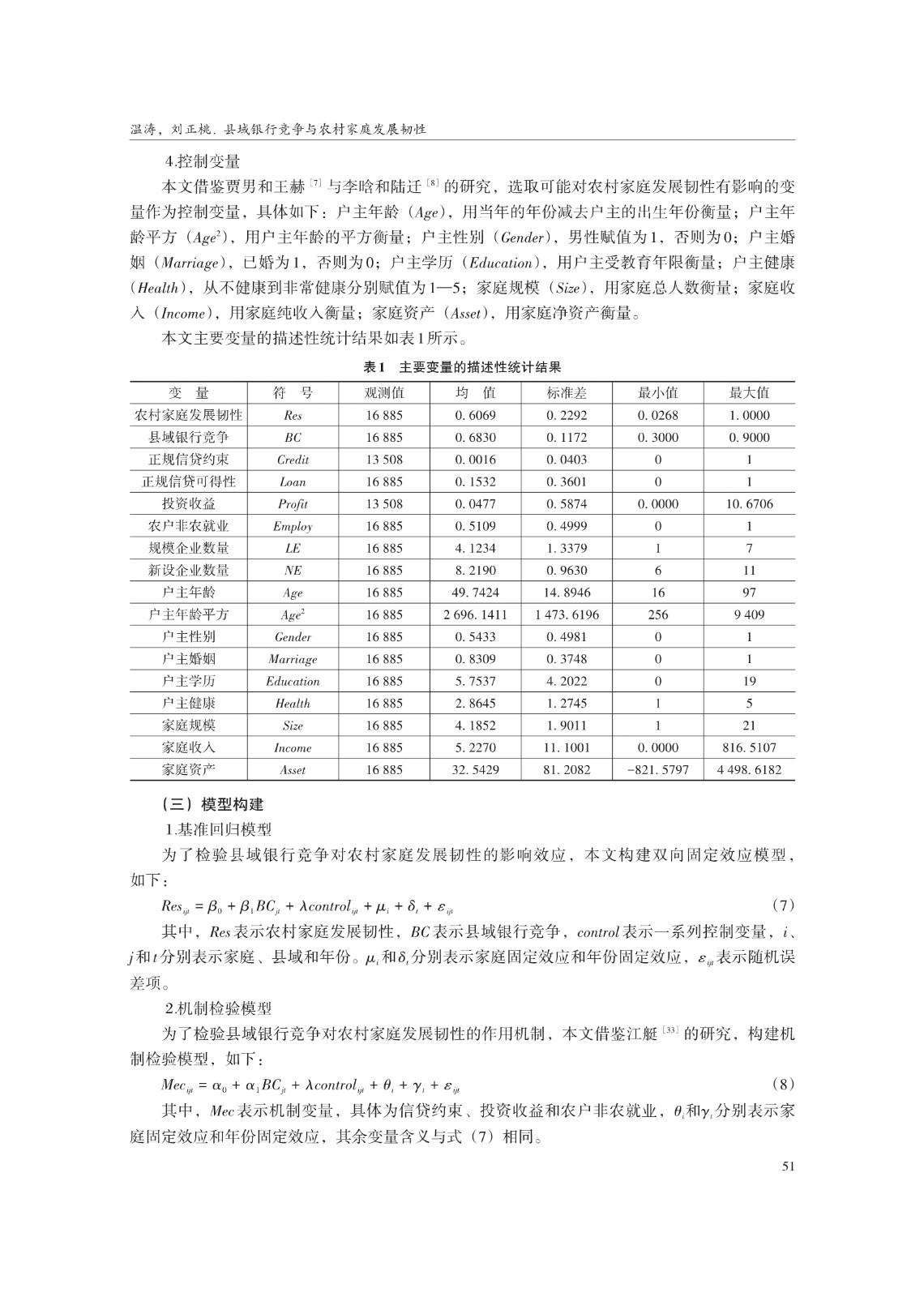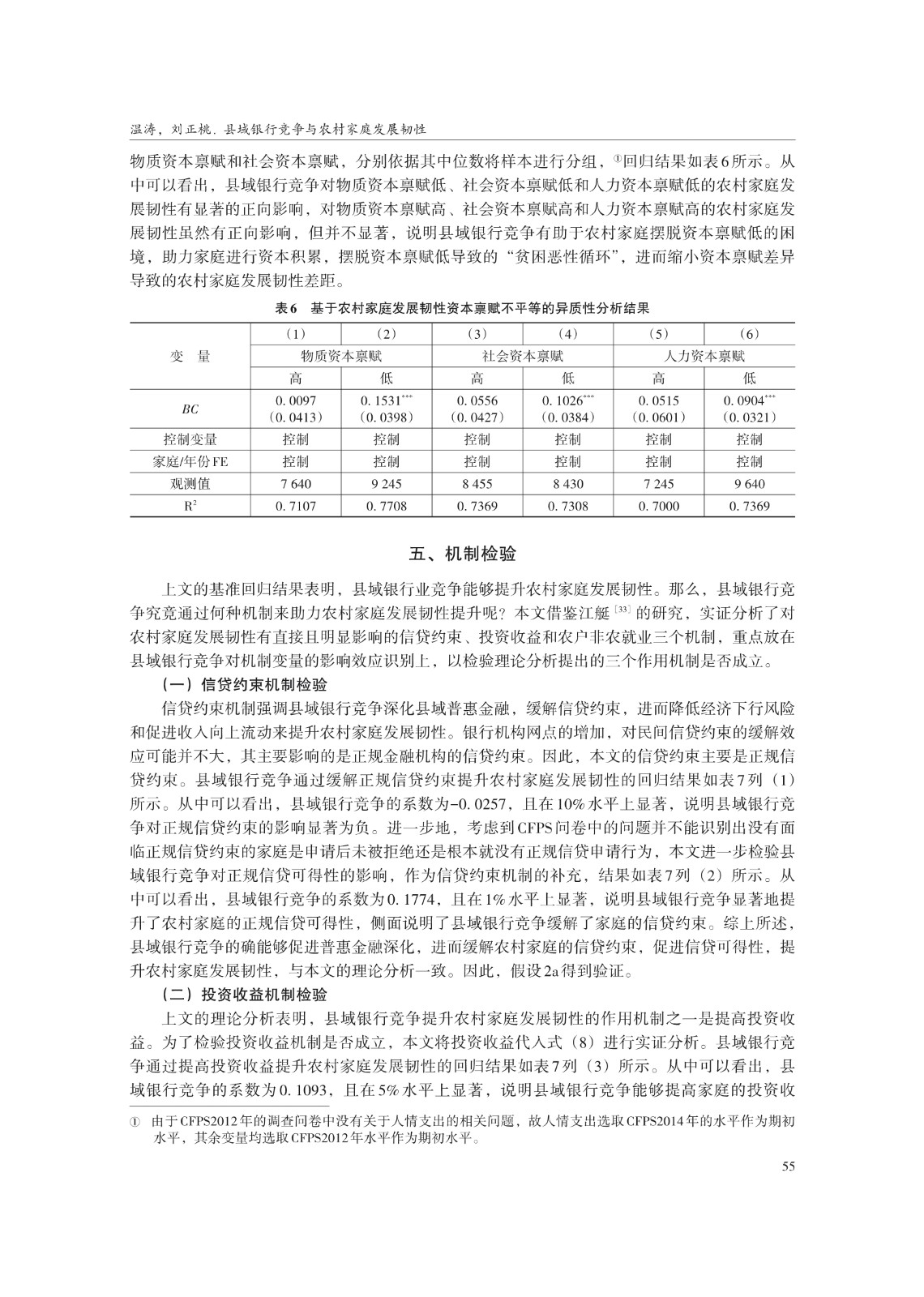 关键词: 县域银行竞争;农村家庭发展韧性;信贷约束;农户非农就业;共同富裕