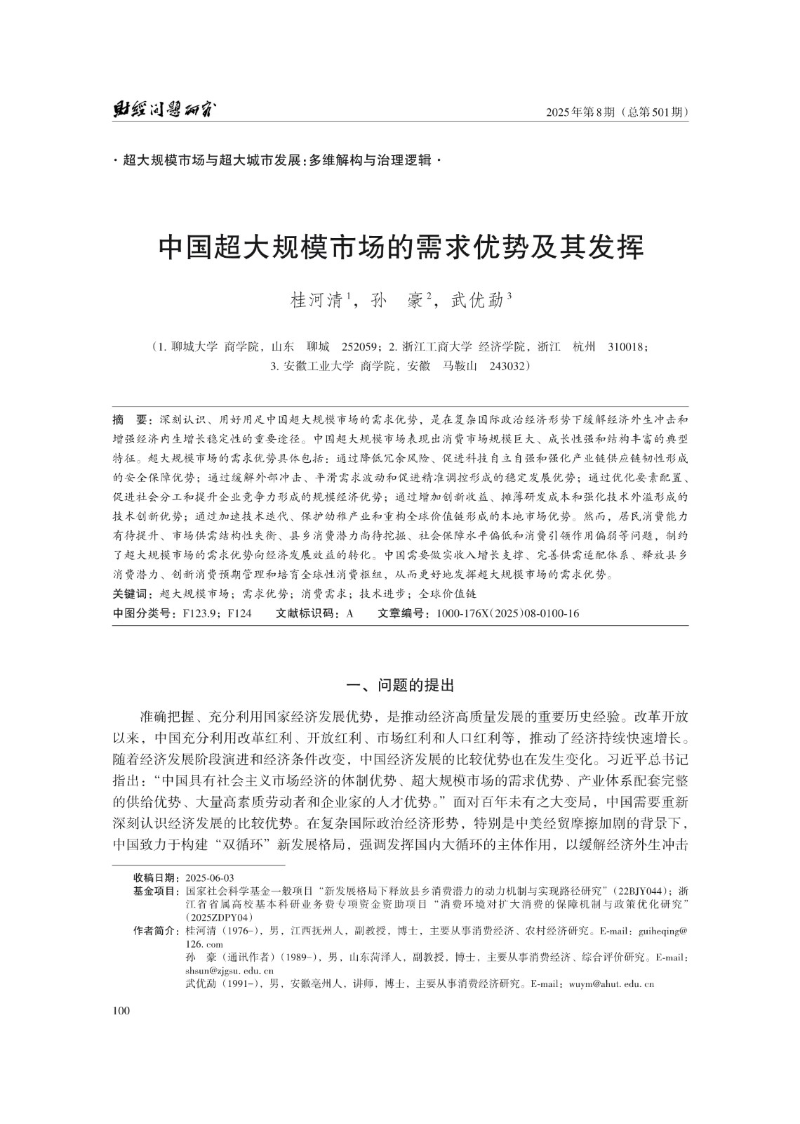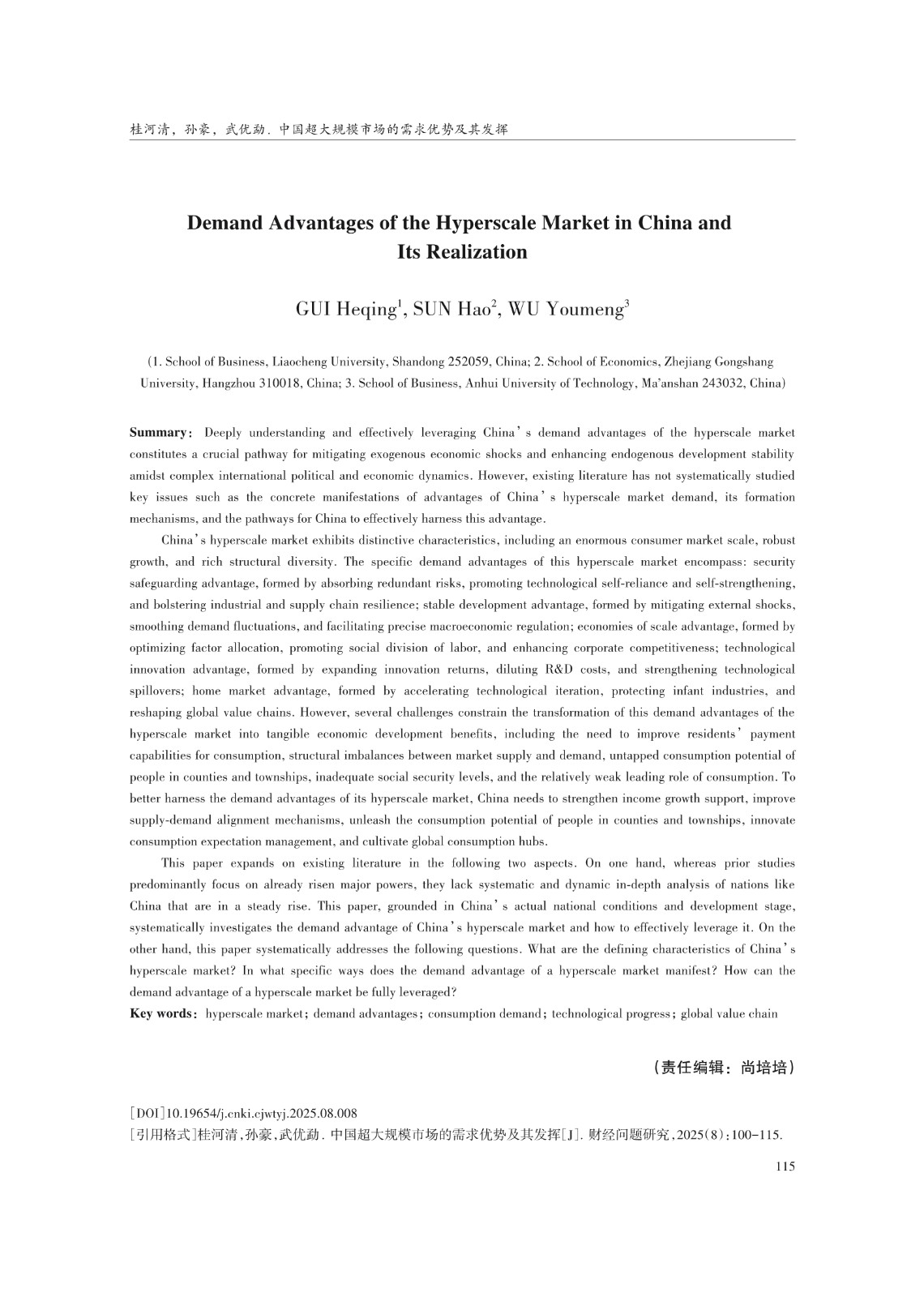 关键词: 超大规模市场;需求优势;消费需求;技术进步;全球价值链