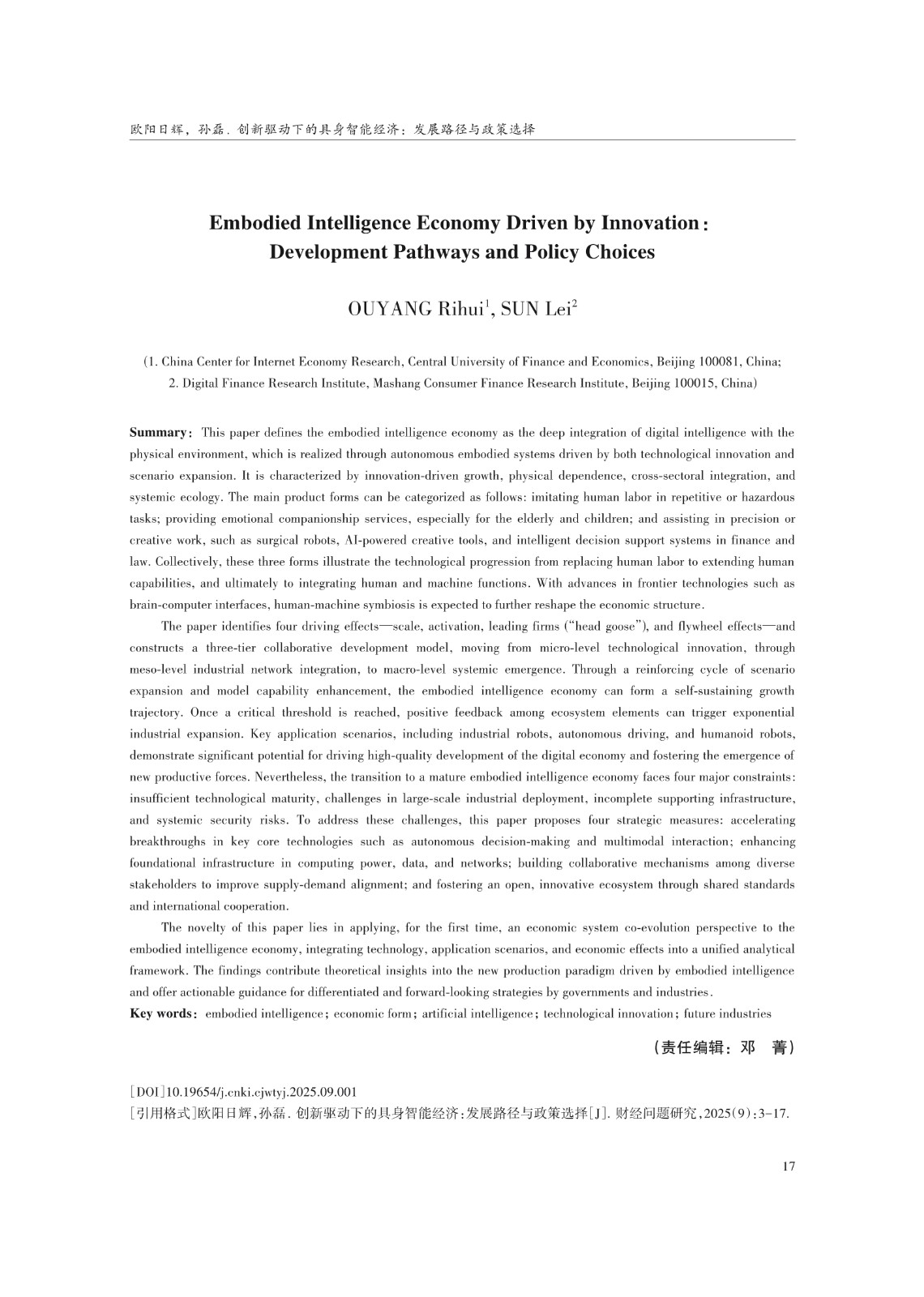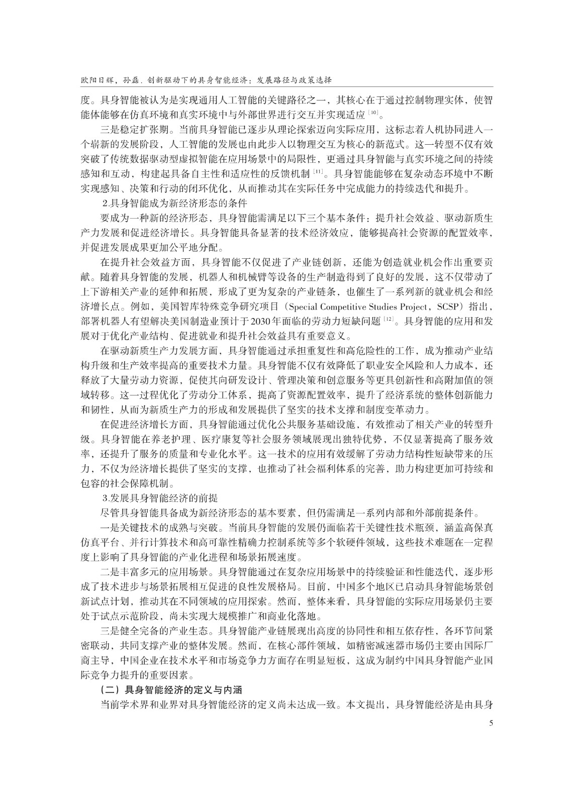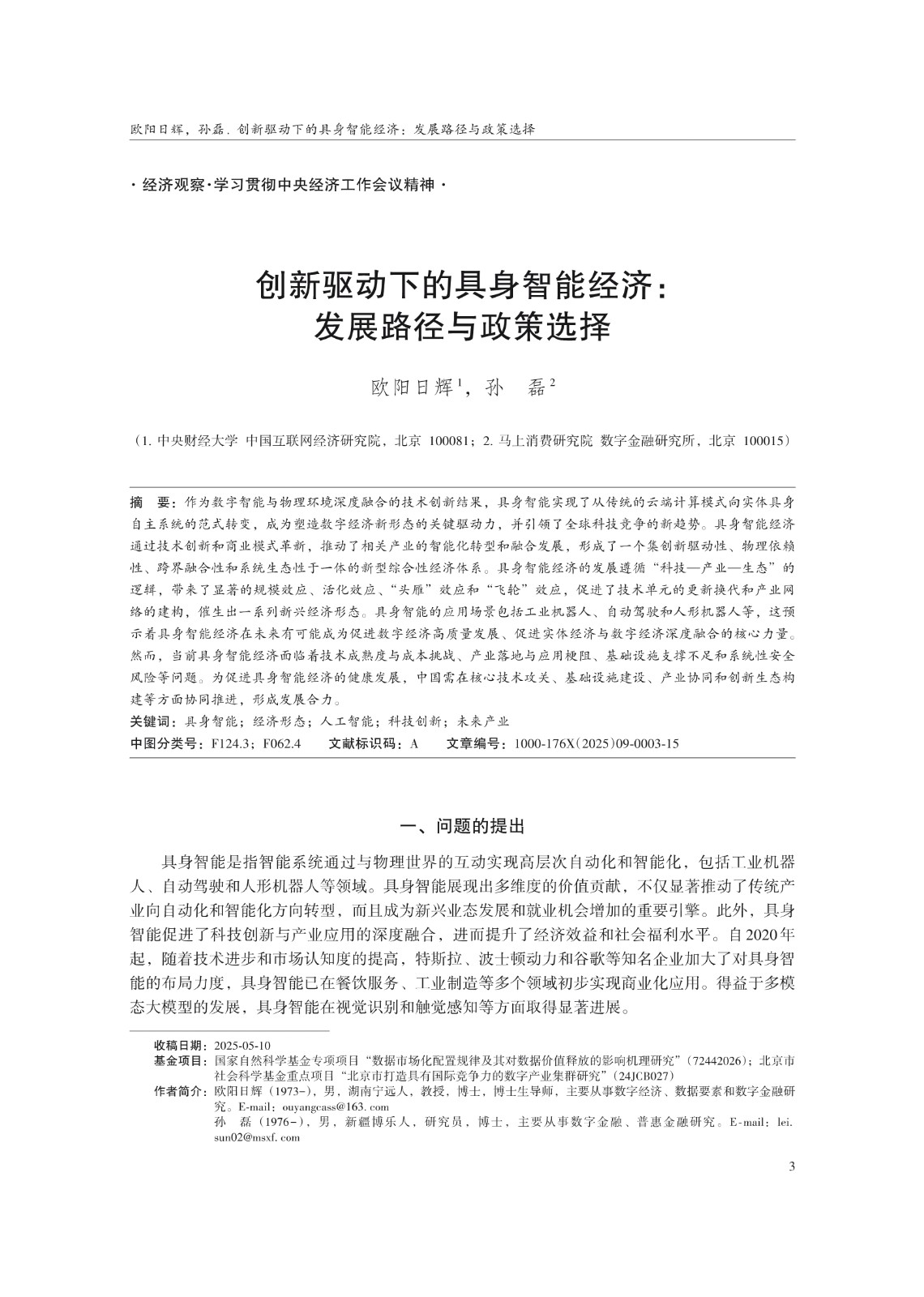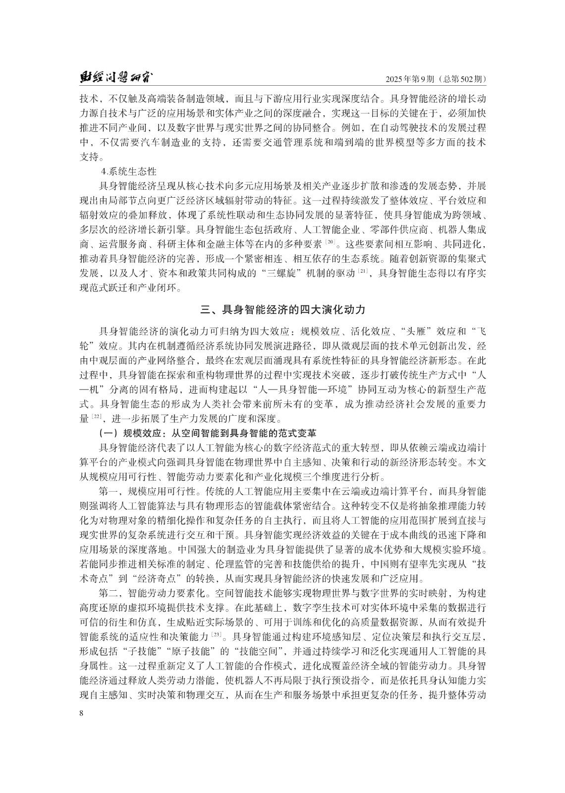 关键词: 具身智能;经济形态;人工智能;科技创新;未来产业