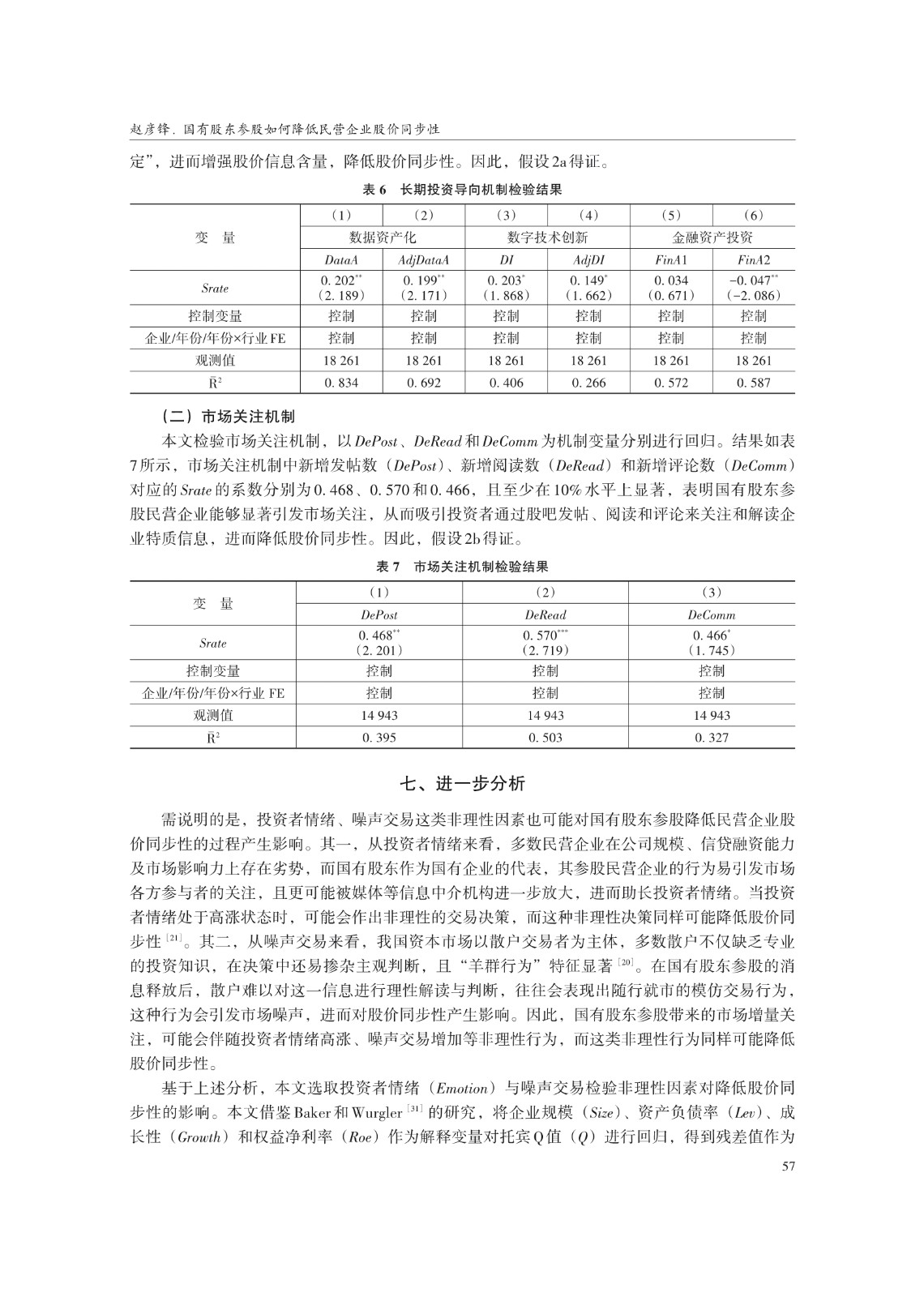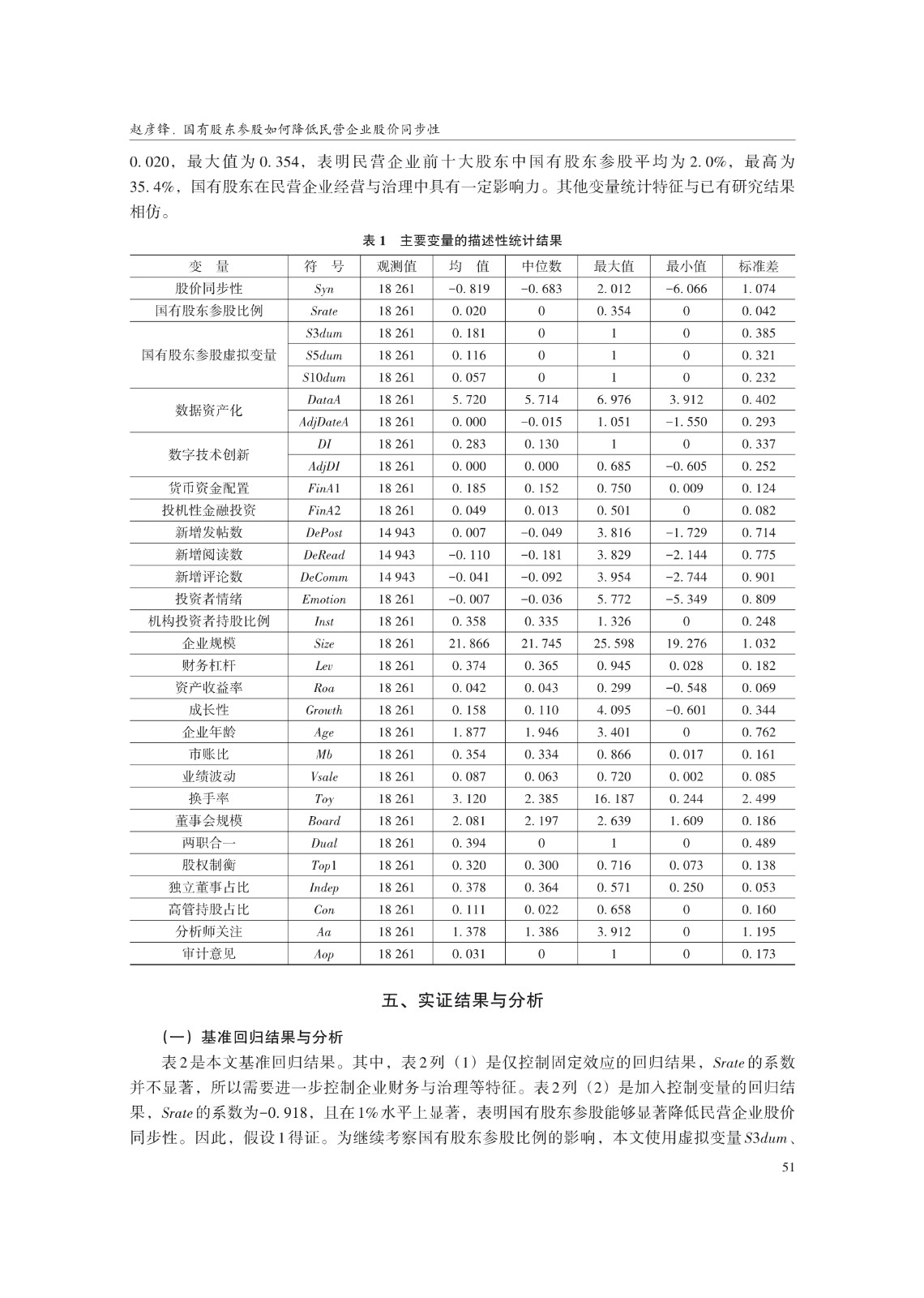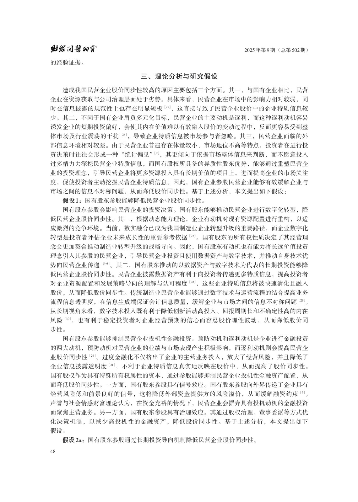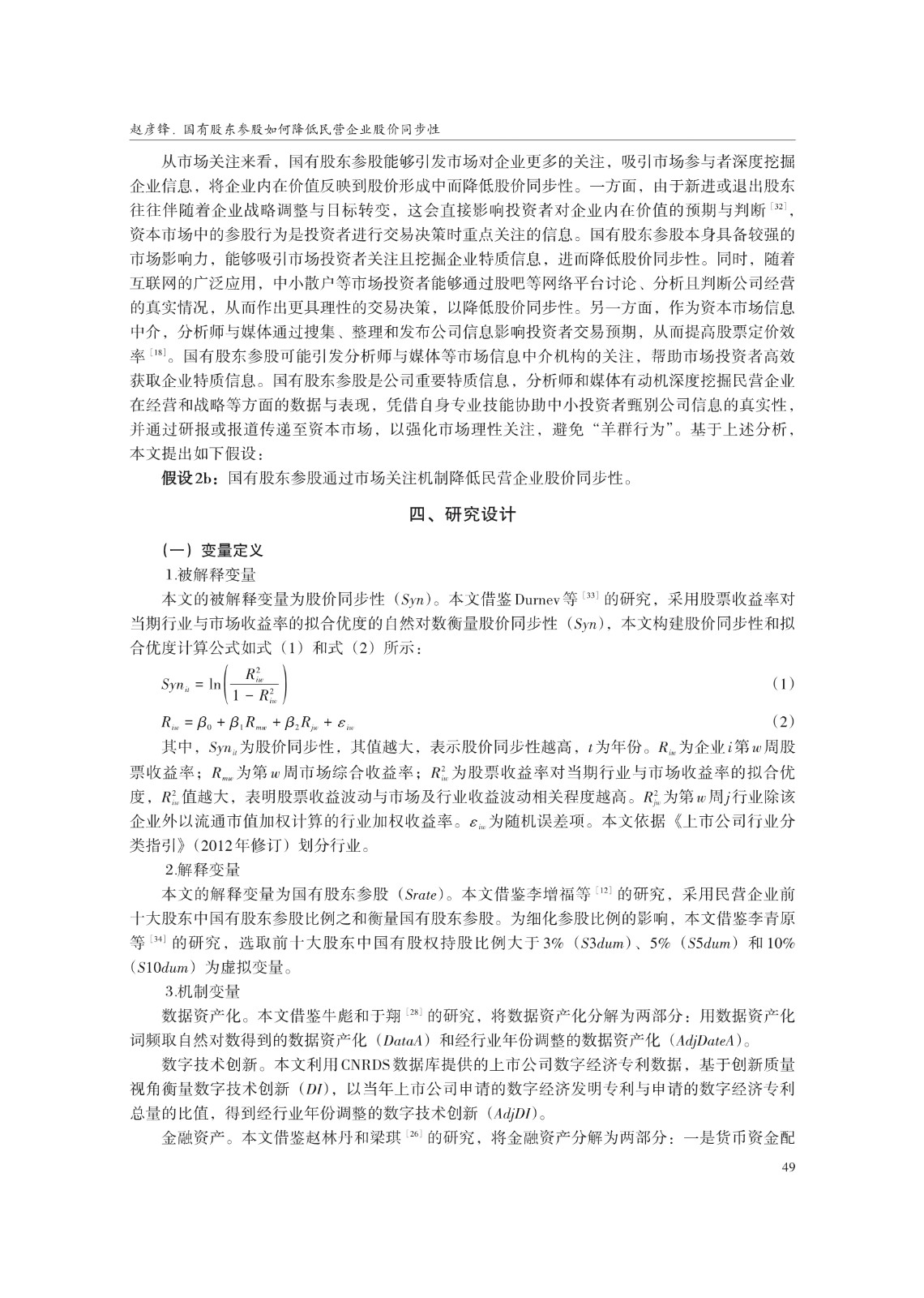 关键词: 国有股东参股;股价同步性;长期投资导向;数据资产;市场关注