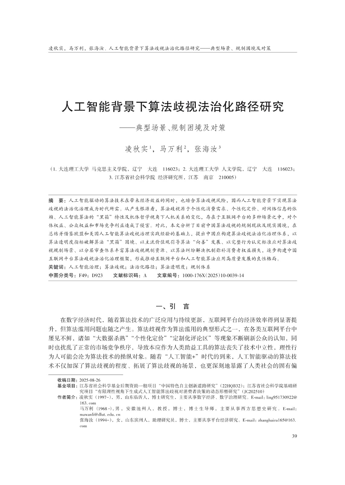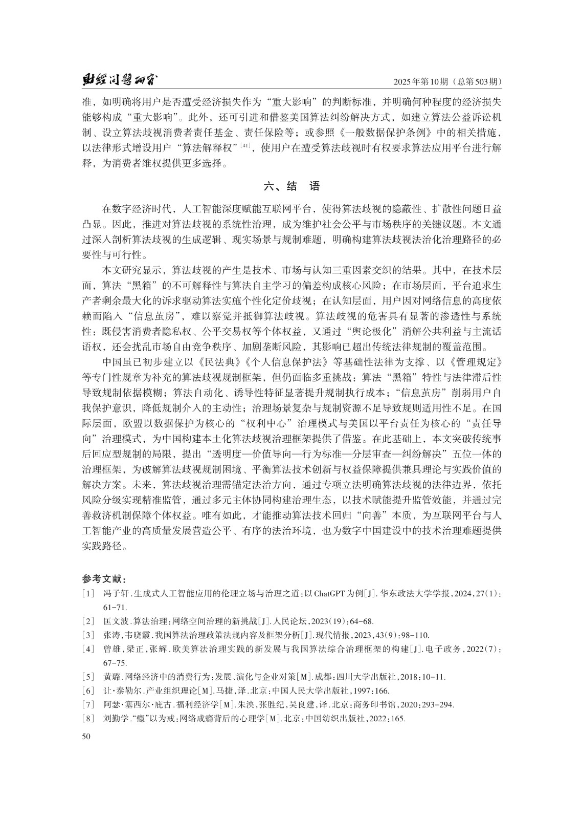 基金项目:江苏省社会科学基金后期资助一般项目“中国特色自主创新道路研究”(22HQB32);江苏省社会科学院基础研 究项目“有限理性视角下生成式人工智能算法歧视对消费者决策的动态形塑研究”(JC202510)