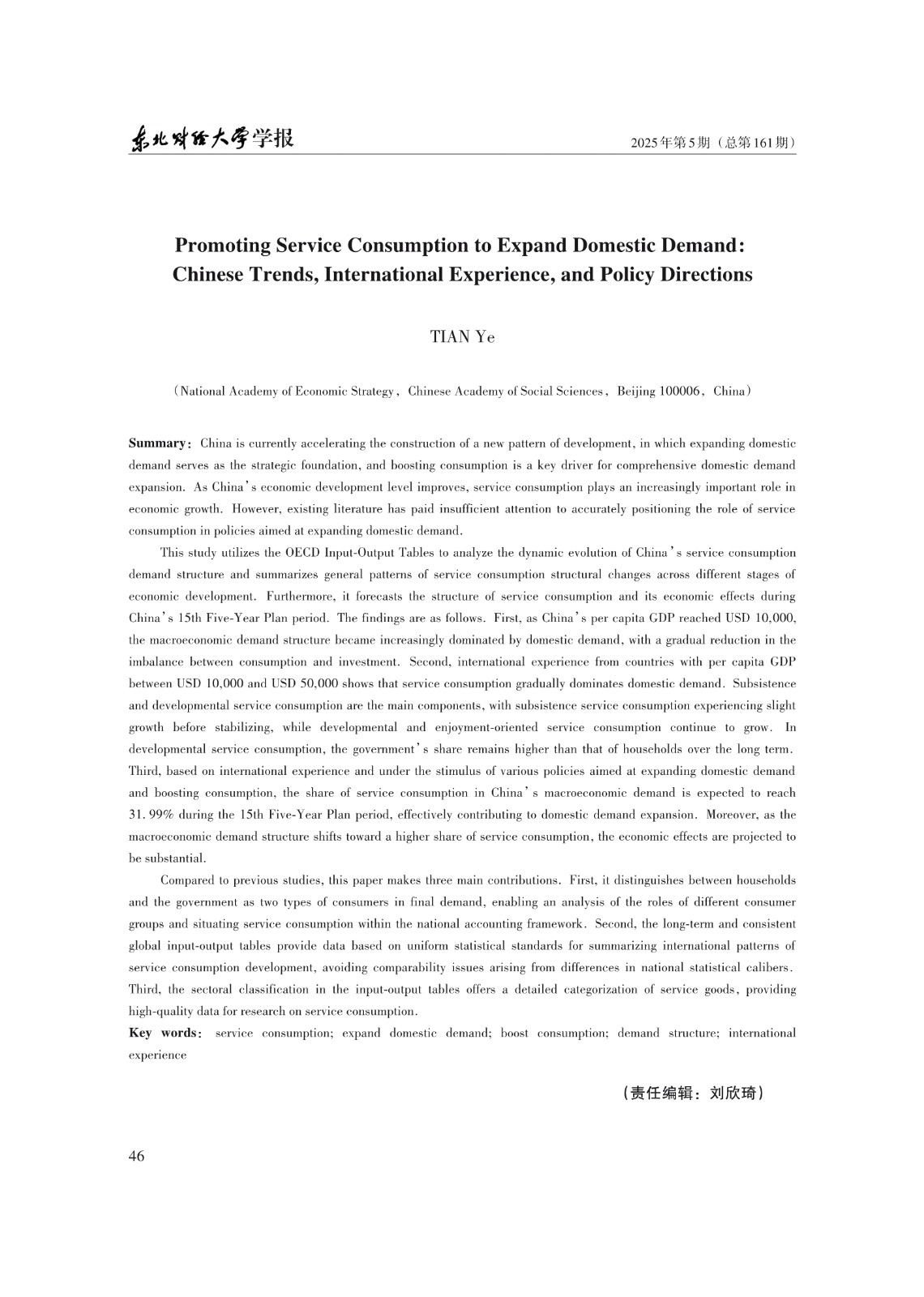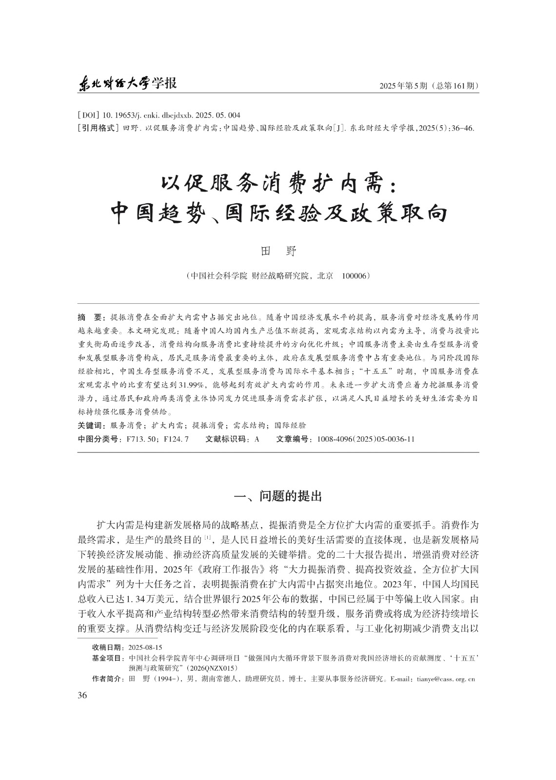 基金项目:中国社会科学院青年中心调研项目“做强国内大循环背景下服务消费对我国经济增长的贡献测度、‘十五五’ 预测与政策研究”(2026QNZX015)