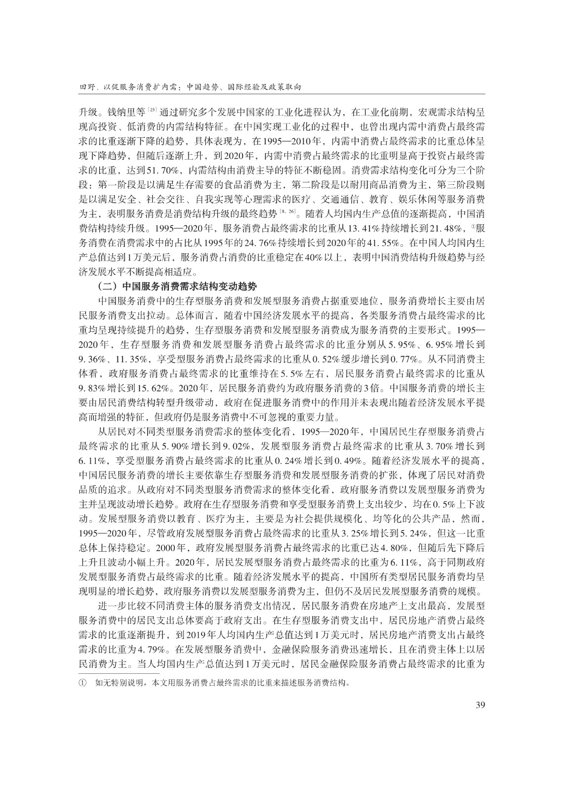 关键词: 服务消费;扩大内需;提振消费;需求结构;国际经验