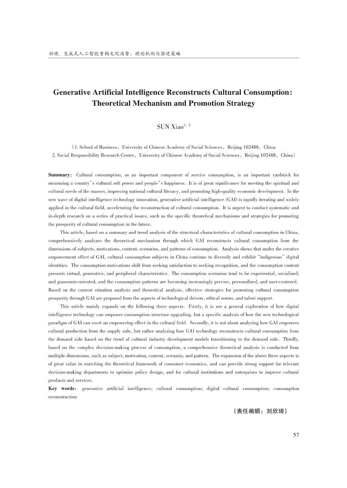 关键词: 生成式人工智能;文化消费;数字文化消费;消费重构