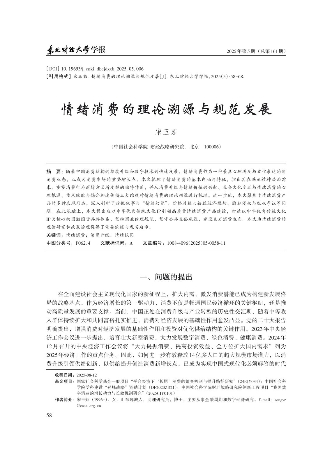 基金项目:国家社会科学基金一般项目“平台经济下‘长尾’消费的嬗变机制与提升路径研究”(24BJY034);中国社会科 学院学科建设“登峰战略”资助计划 (DF2023ZD21);中国社会科学院财经战略研究院创新工程项目“我国数 字消费的增长动力与长效机制研究”(2025CJY0101)