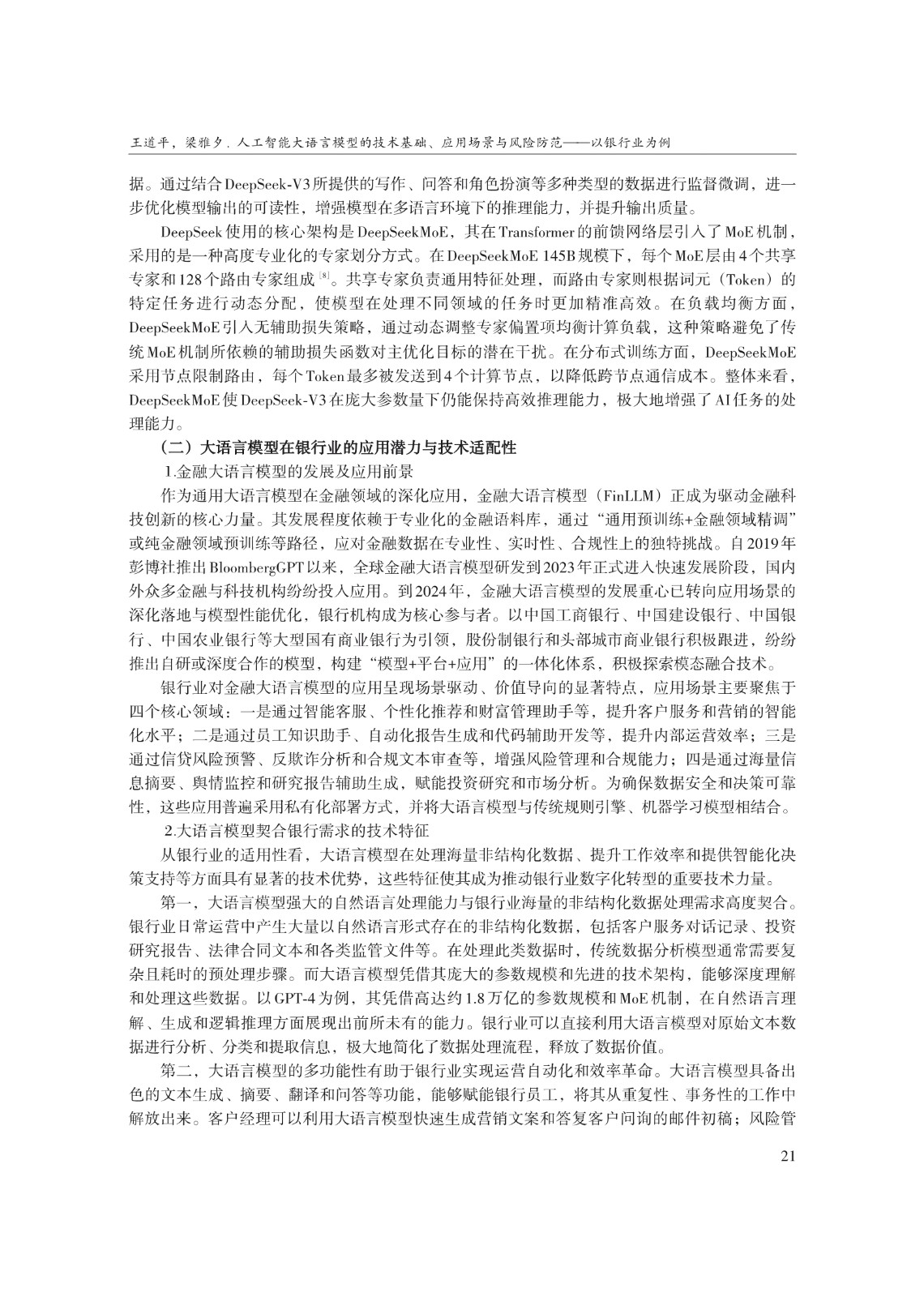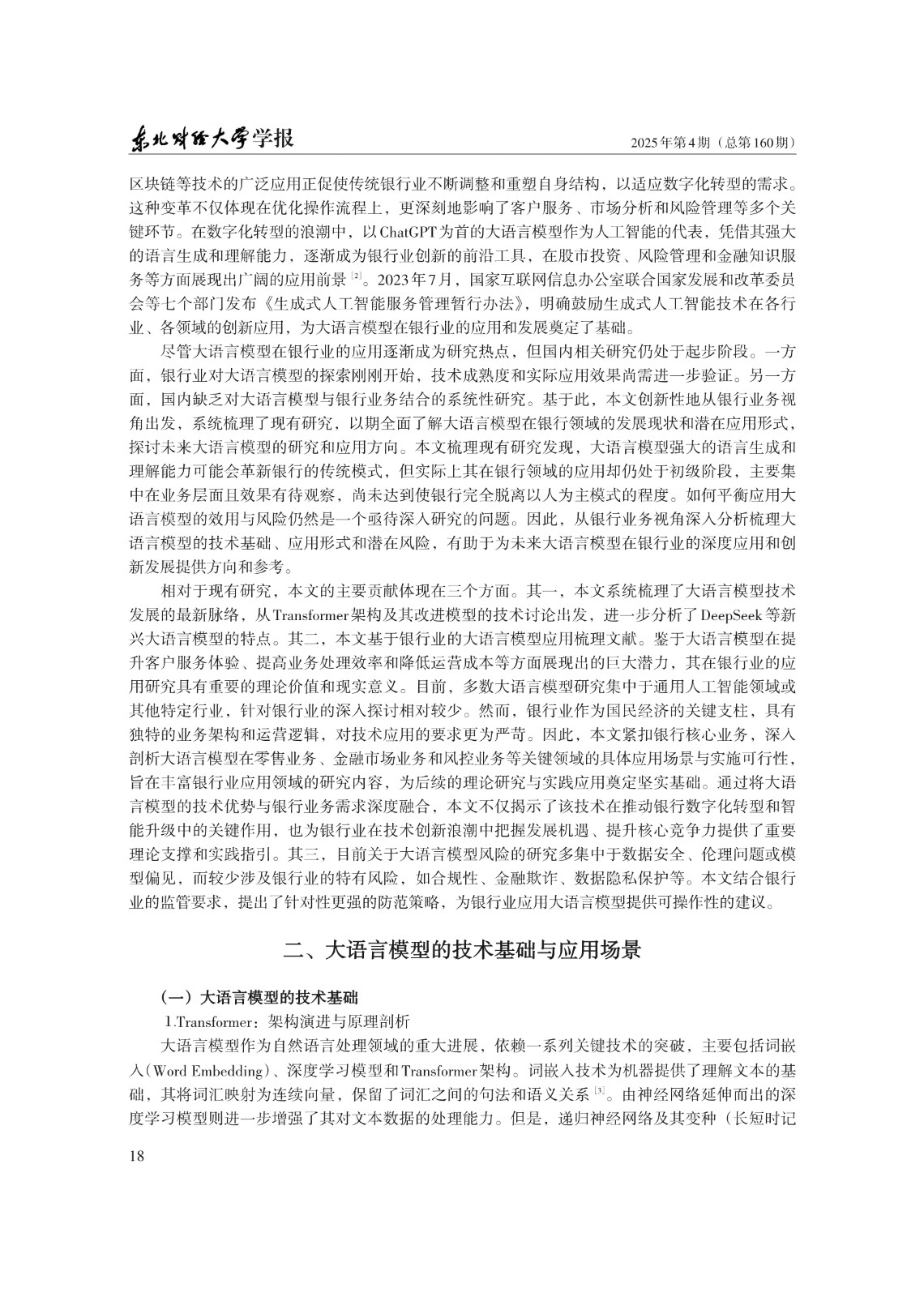 人工智能大语言模型的技术基础、 应用场景与风险防范 ——以银行业为例