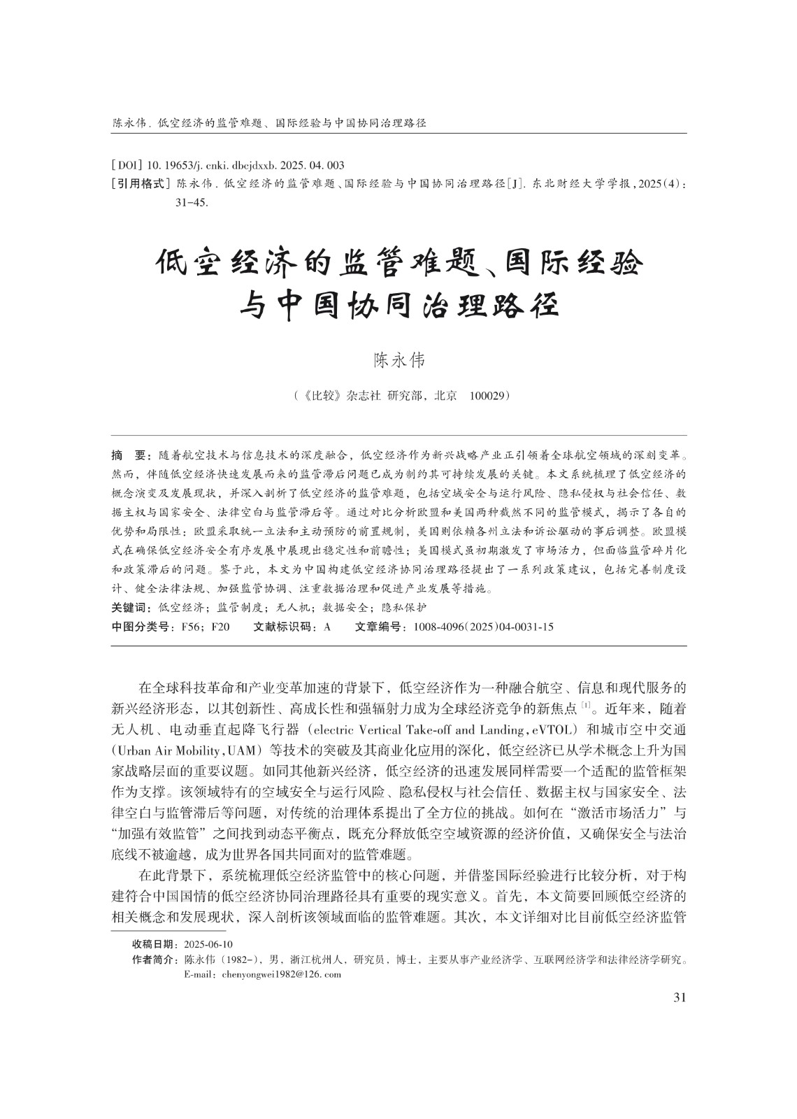 低空经济的监管难题、国际经验 与中国协同治理路径