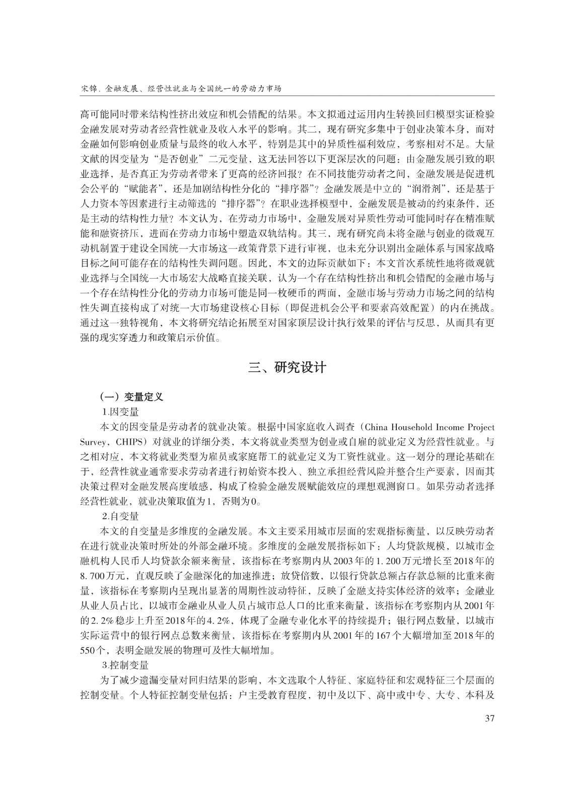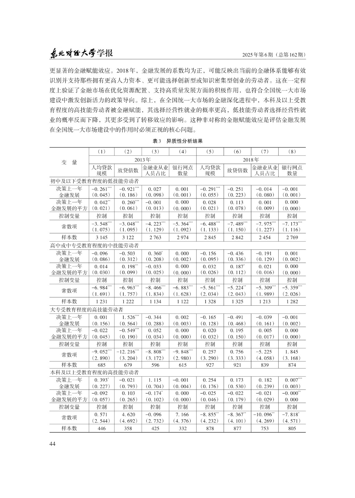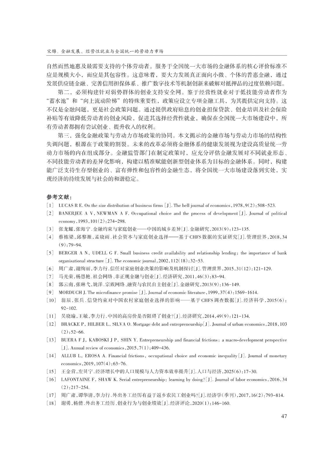 关键词: 金融发展;经营性就业;全国统一大市场;挤出效应;赋能效应