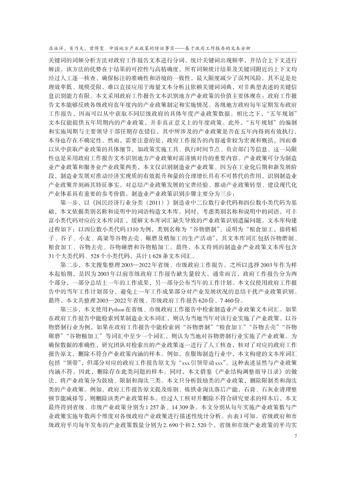 中国地方产业政策的特征事实——基于政府工作报告的文本分析