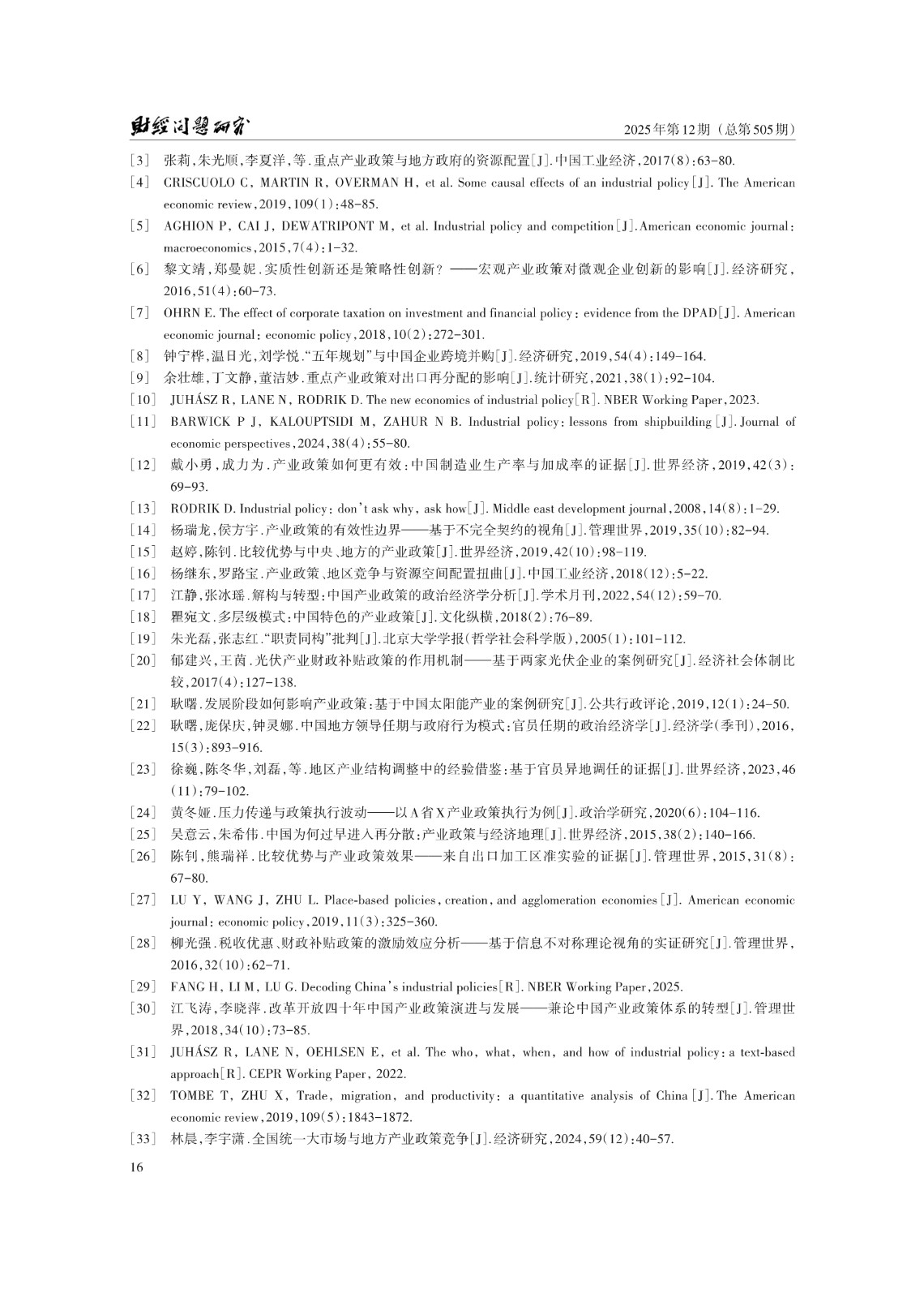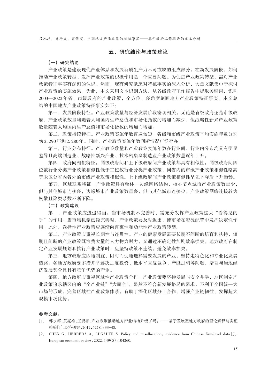 关键词: 地方产业政策;产业政策相似性;产业政策网络结构