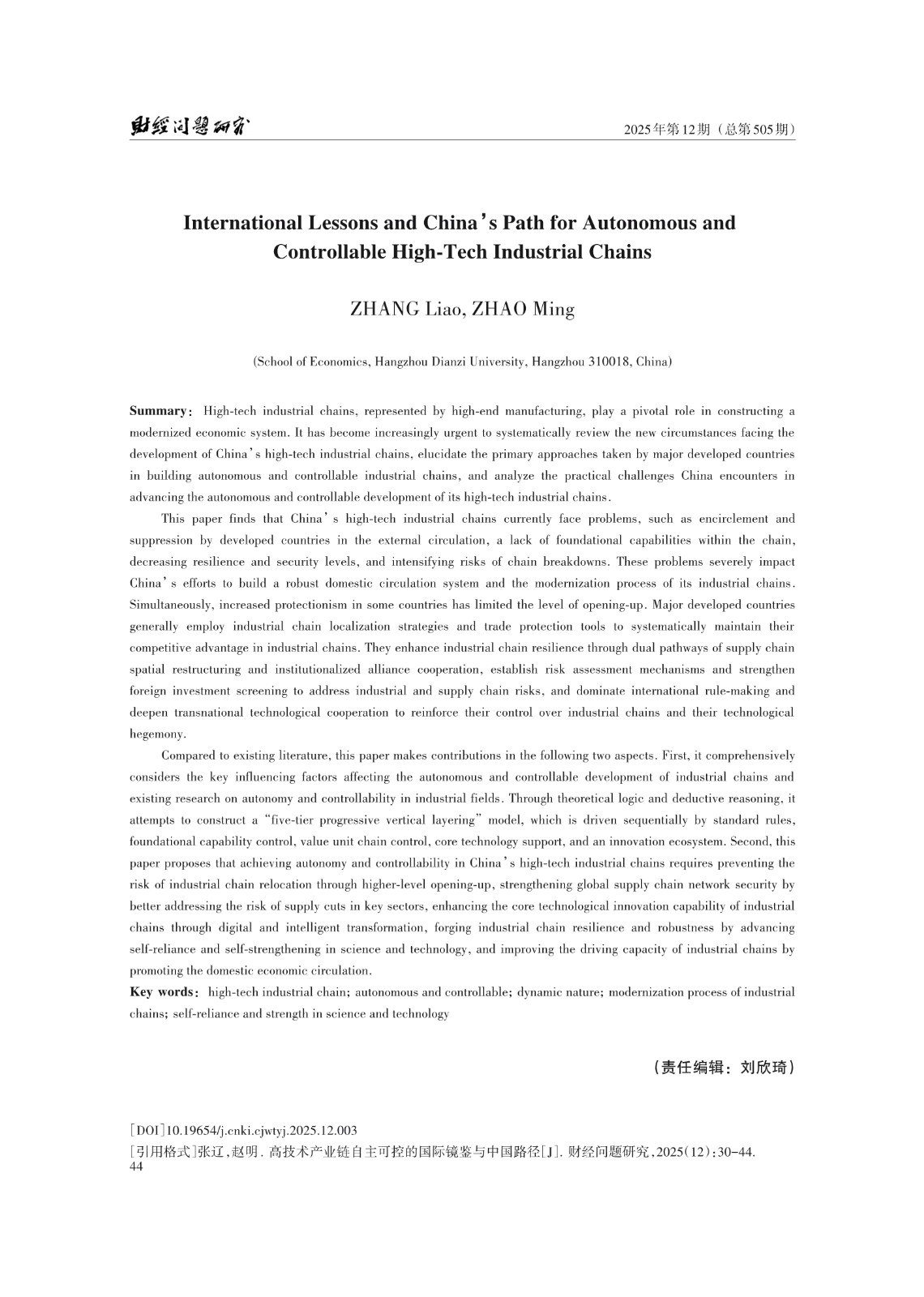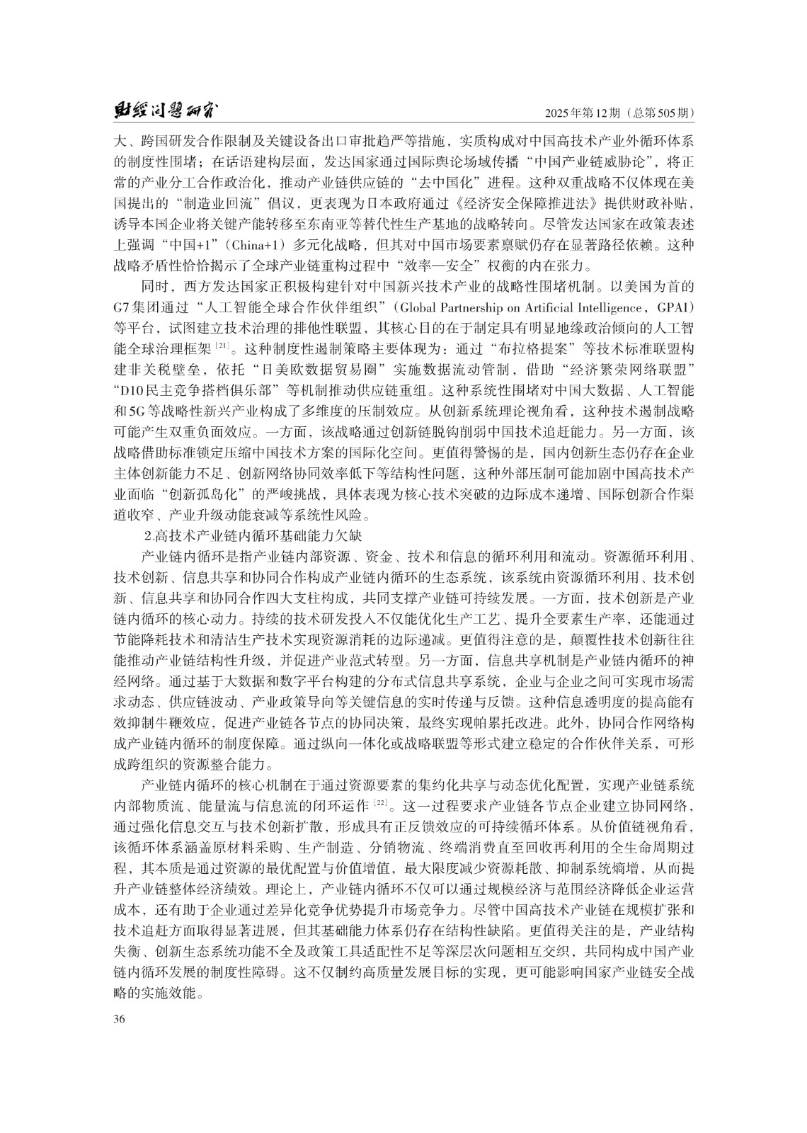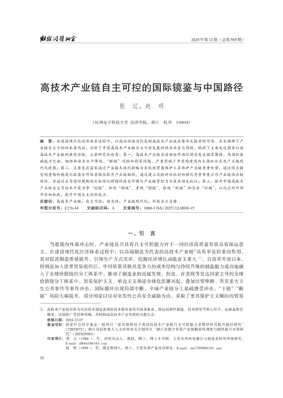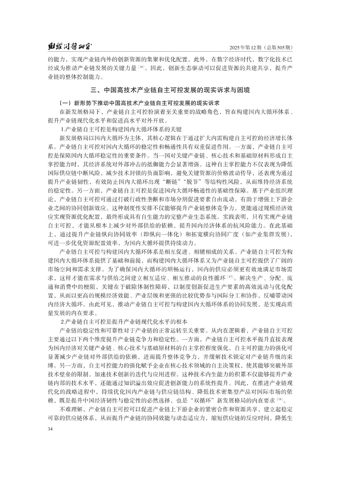 关键词: 高技术产业链;自主可控;动态性;产业链现代化;科技自立自强