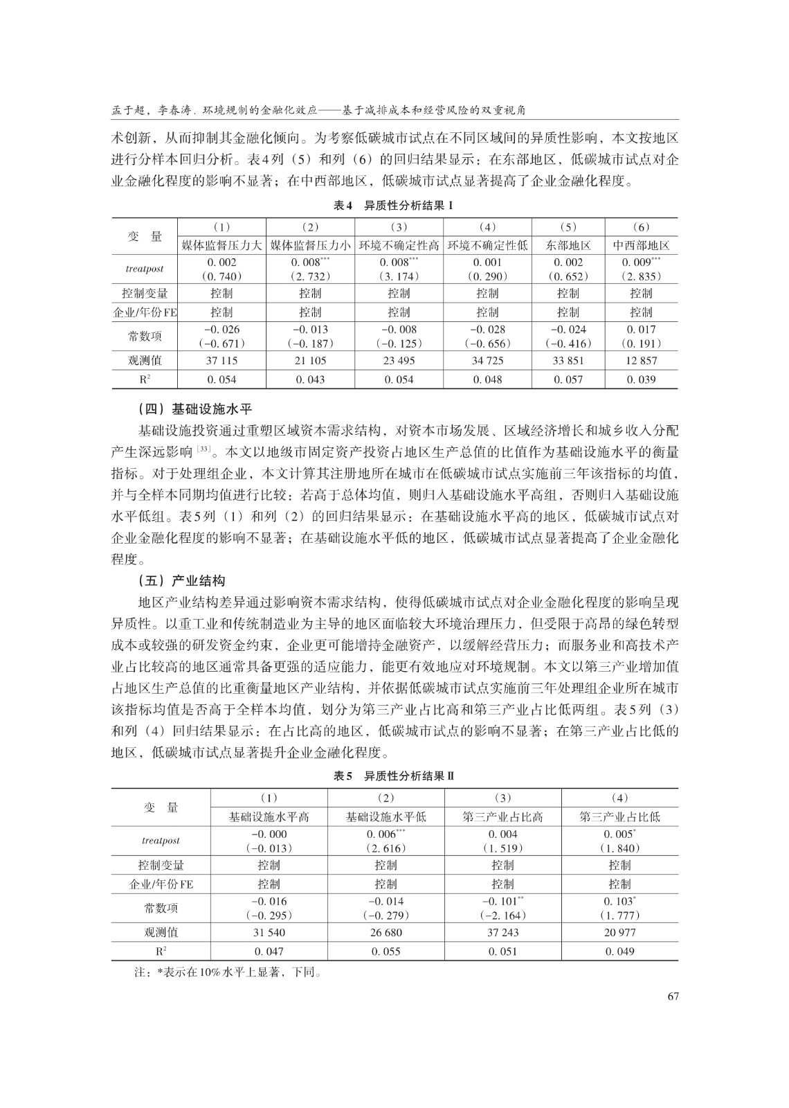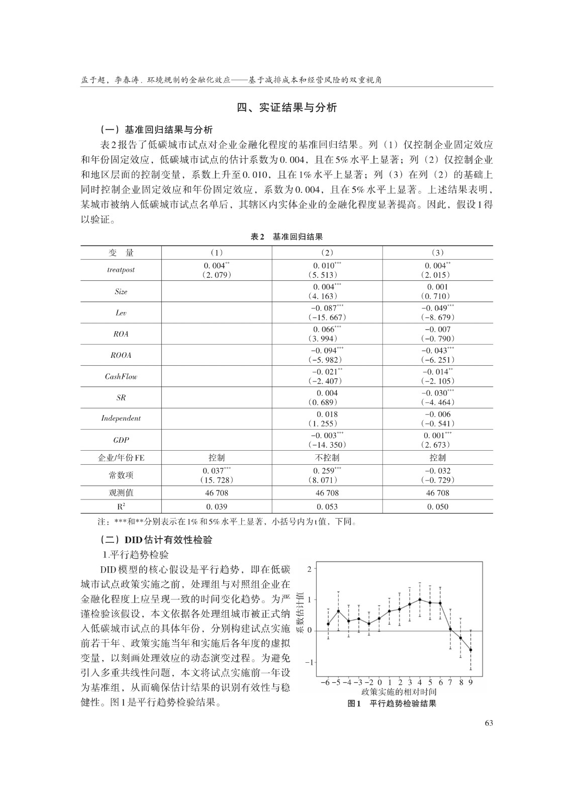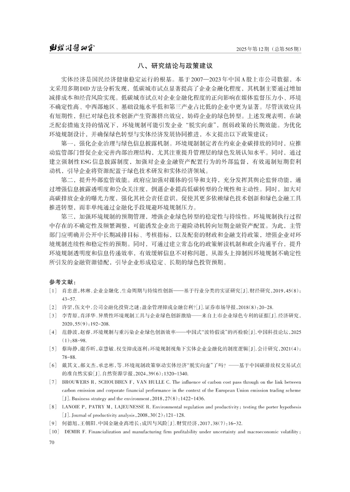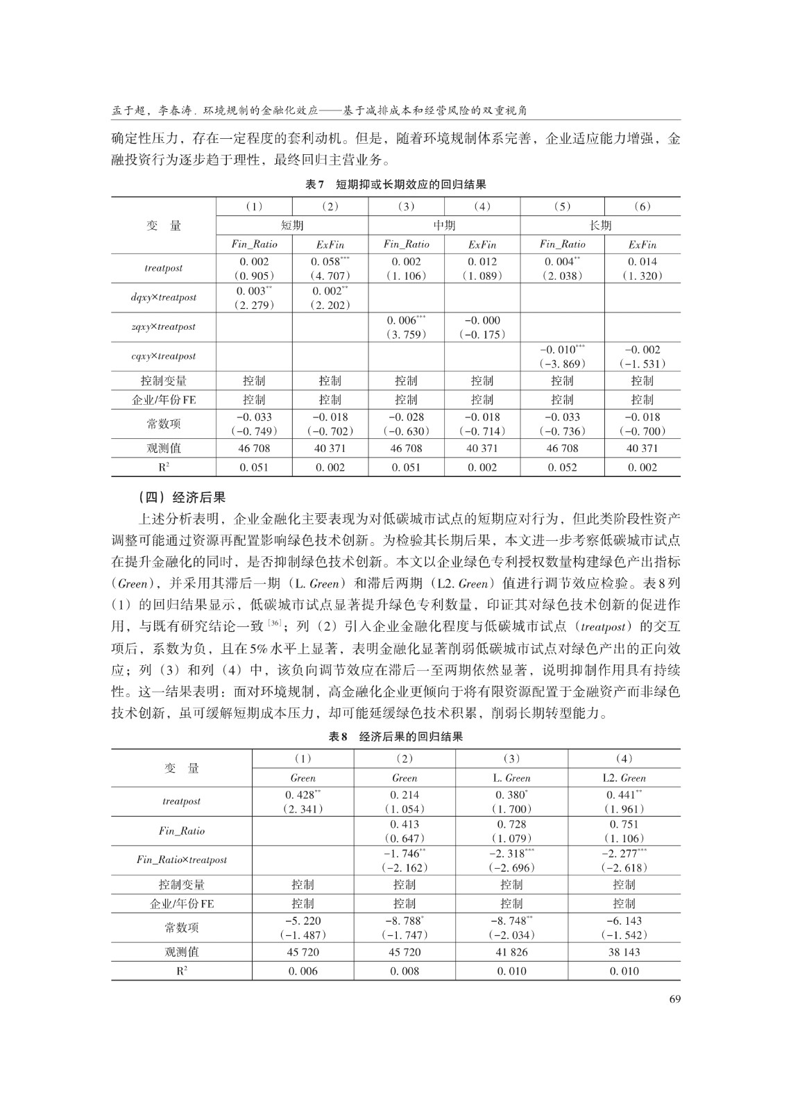 关键词: 环境规制;低碳城市试点;企业金融化;减排成本;经营风险