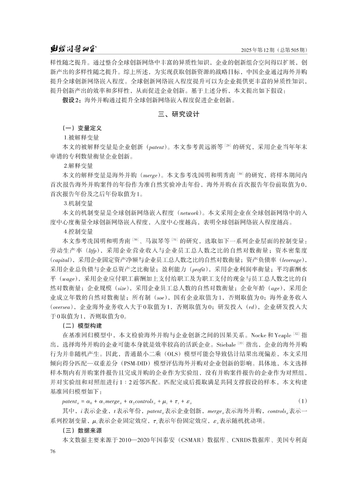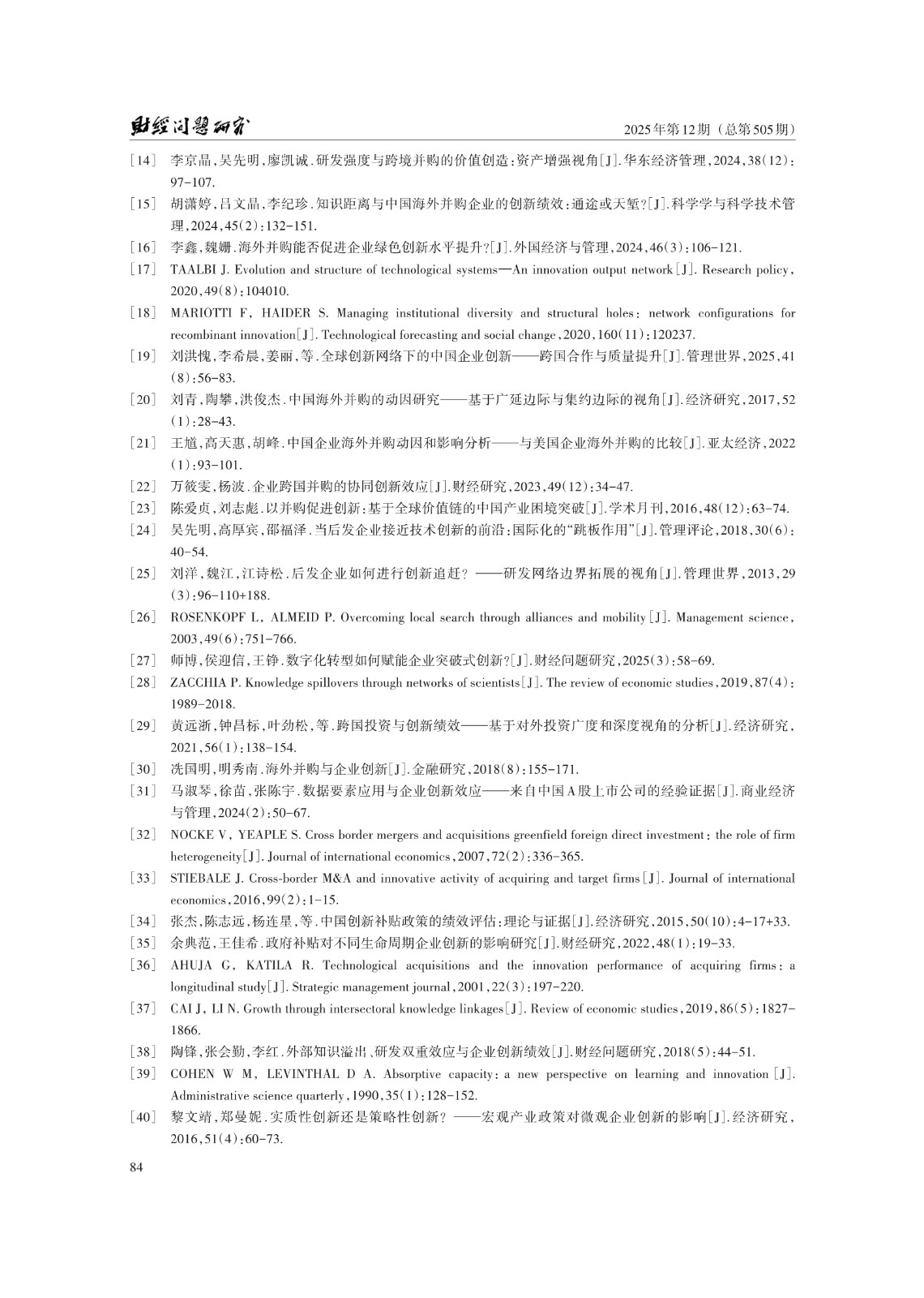 海外并购与企业创新——基于全球创新网络嵌入的视角