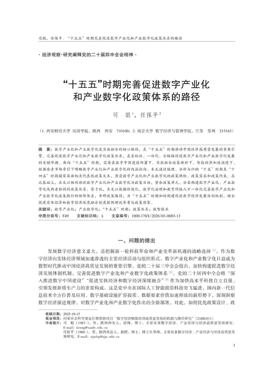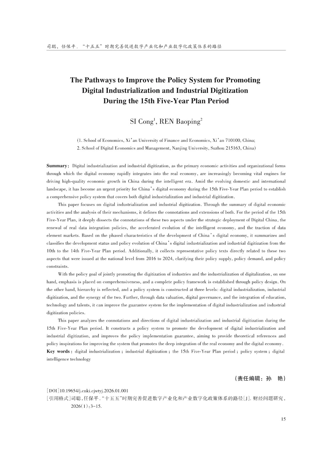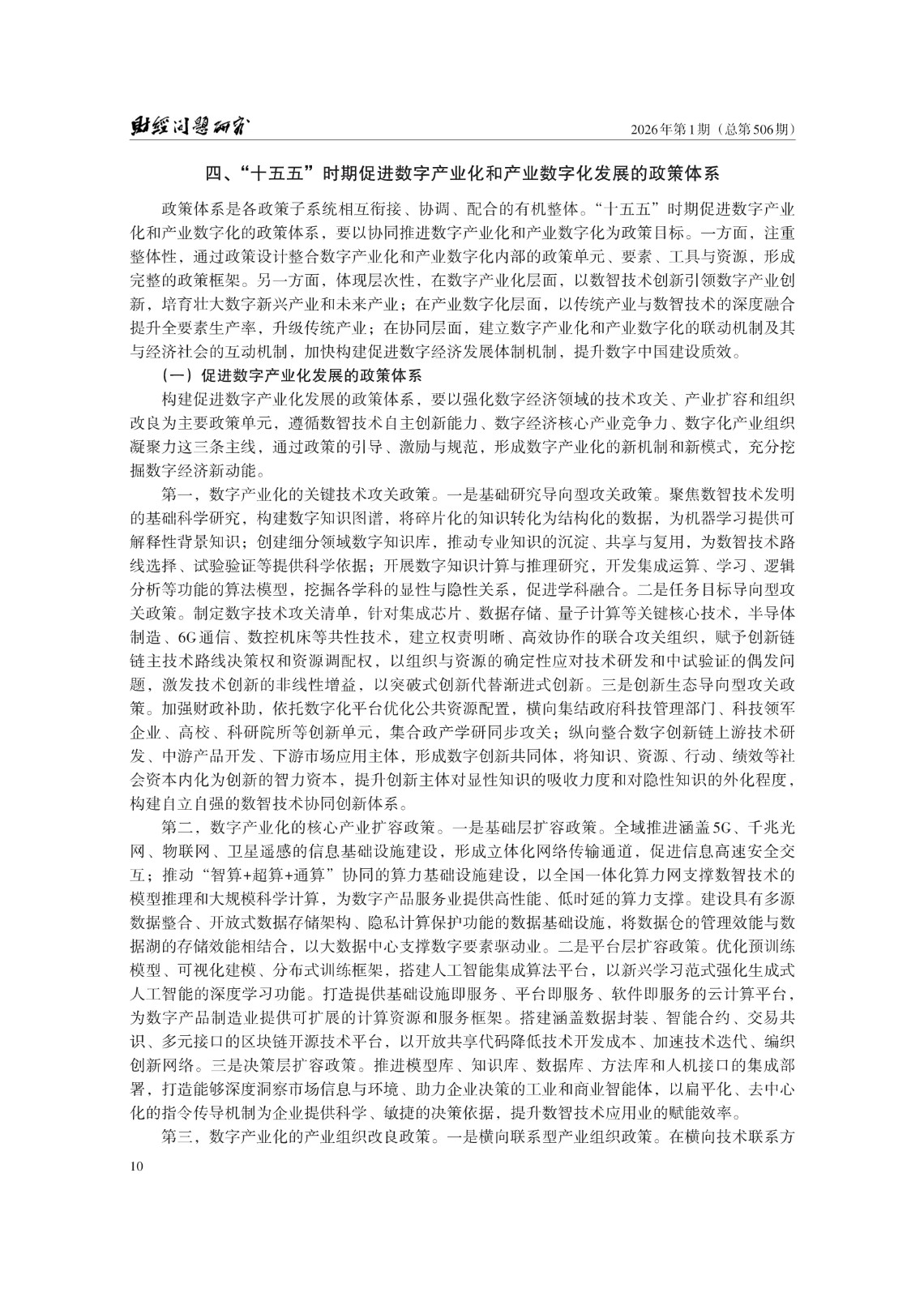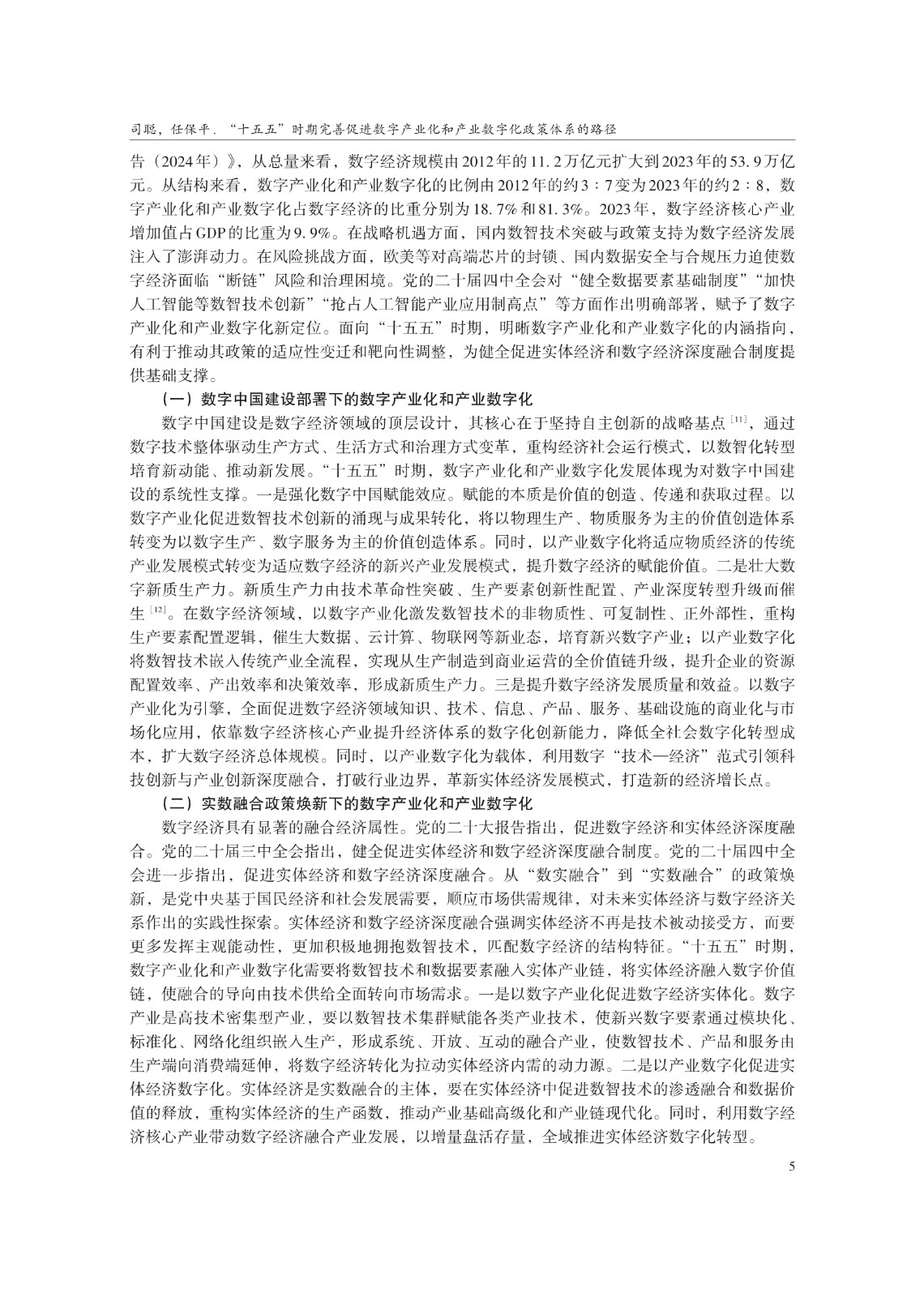 关键词: 数字产业化;产业数字化;“十五五”时期;政策体系;数智技术