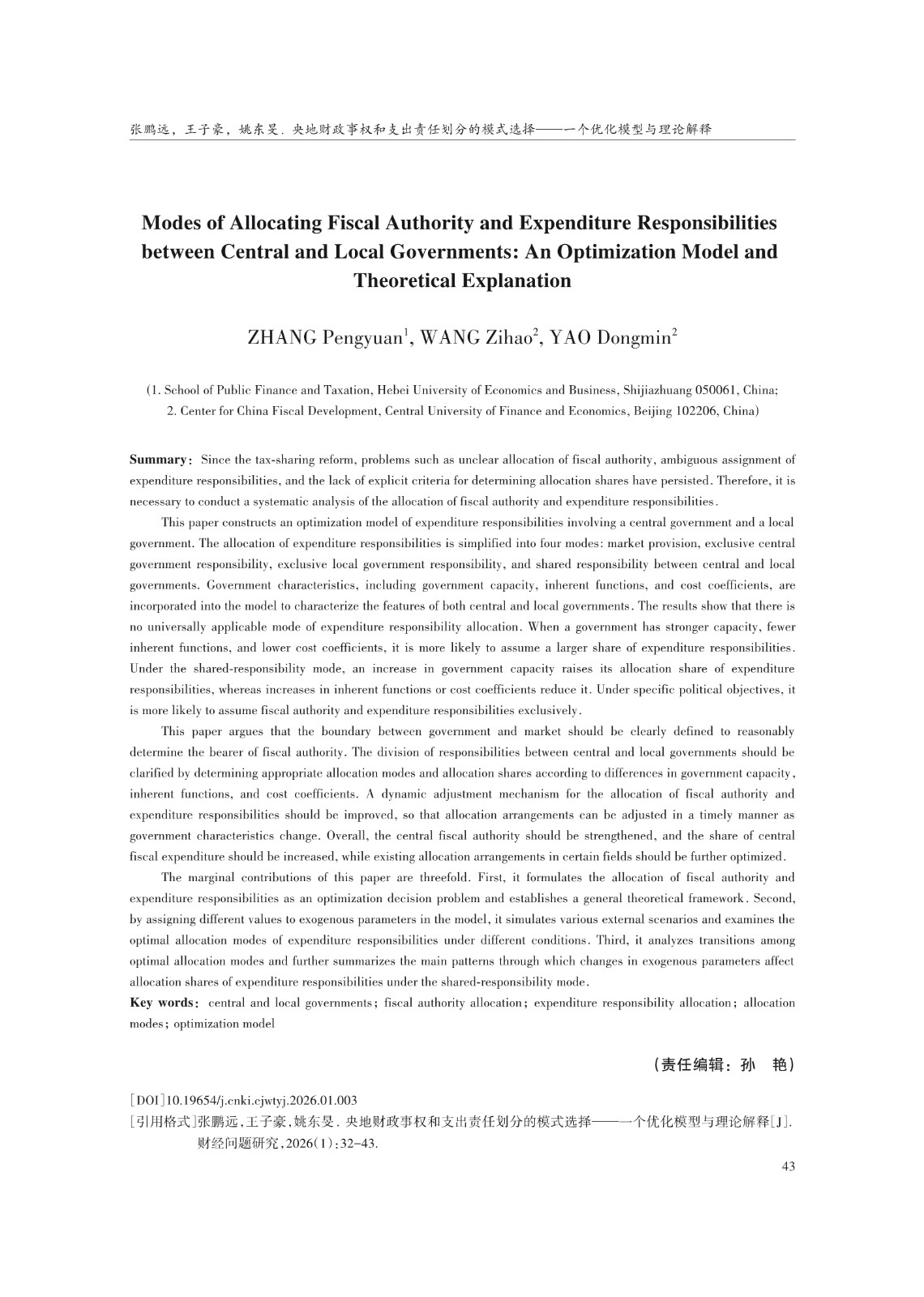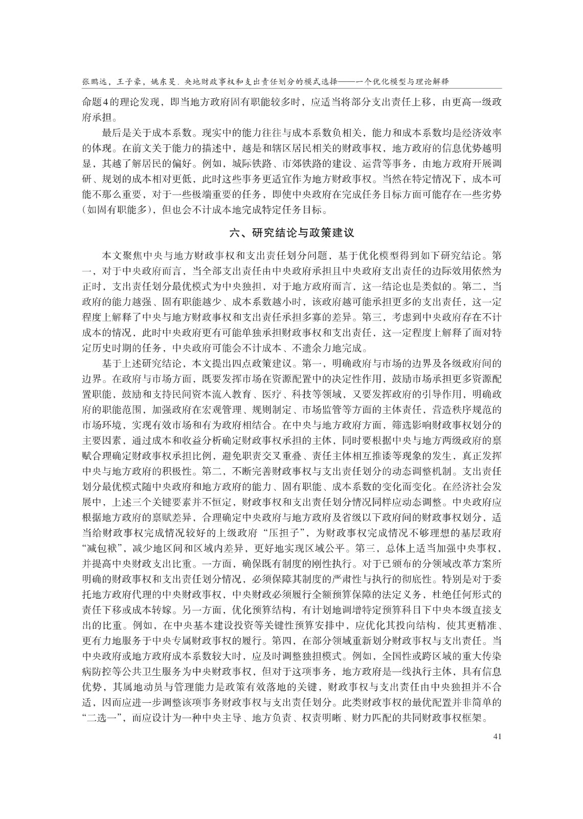 央地财政事权和支出责任划分的模式选择——一个优化模型与理论解释