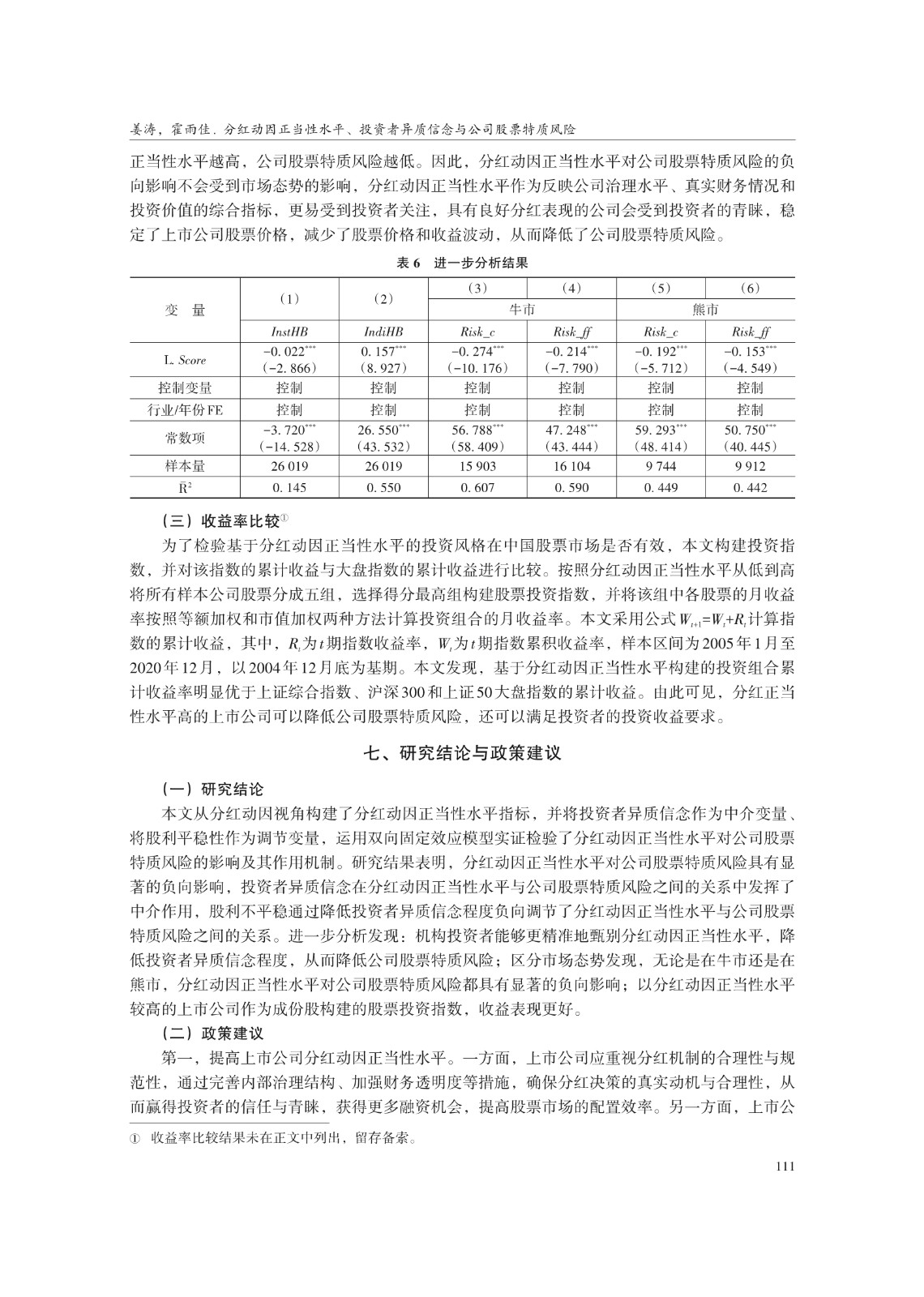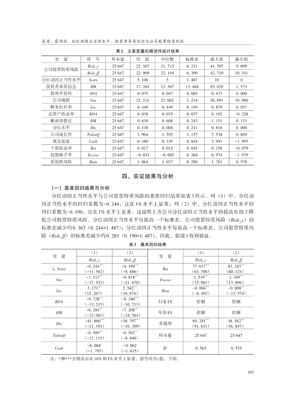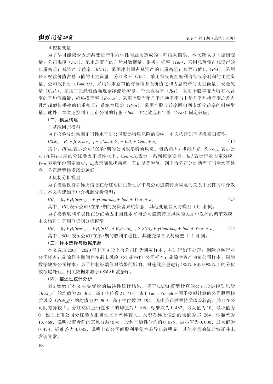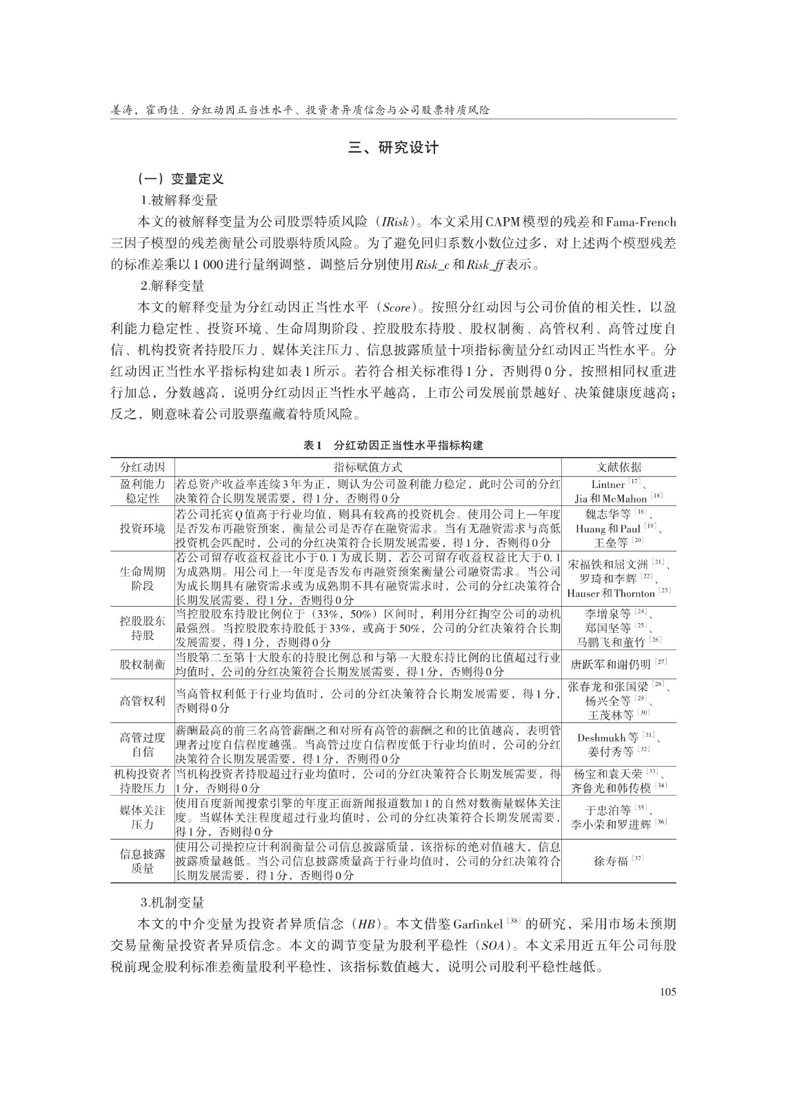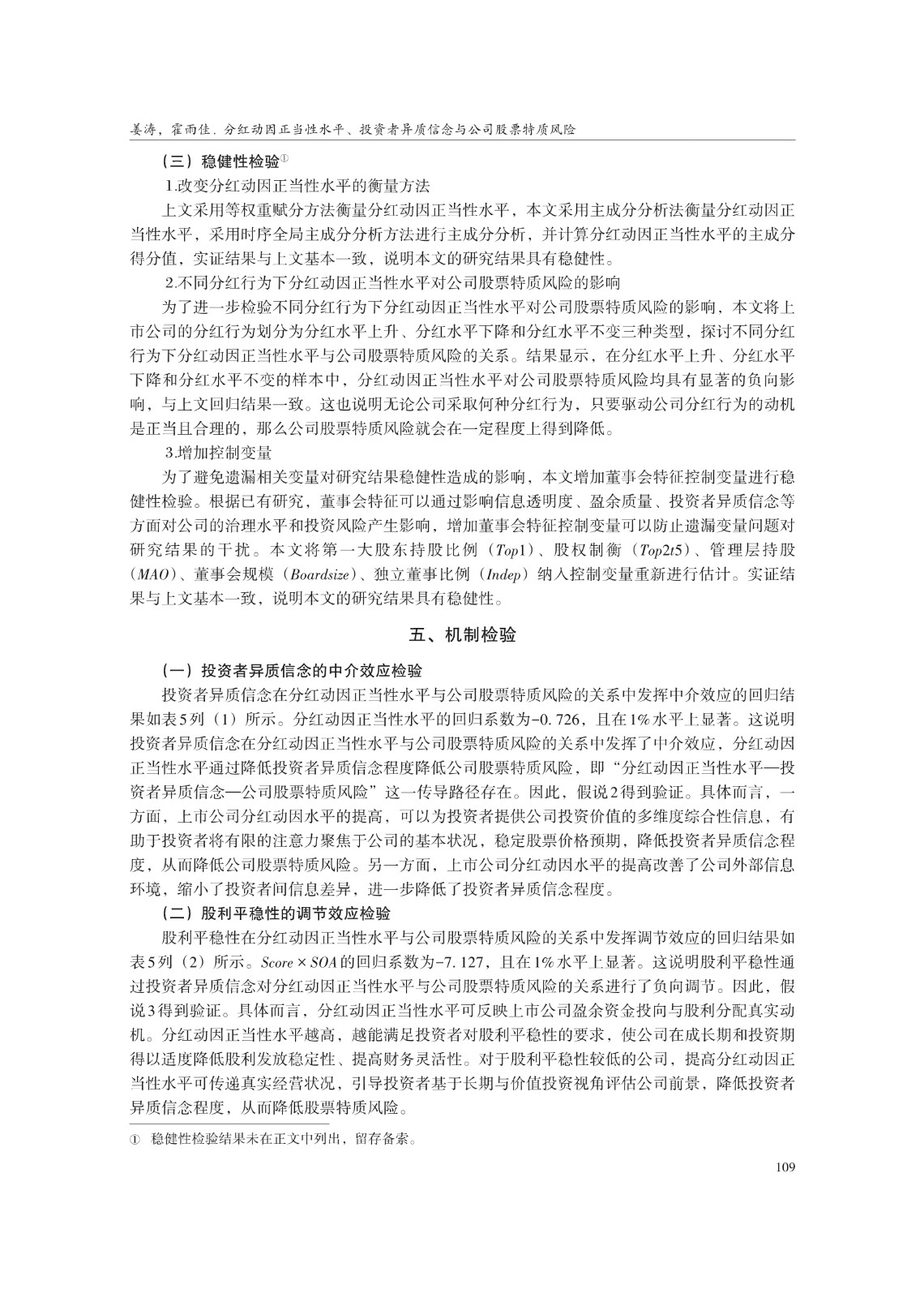 分红动因正当性水平、投资者异质信念与 公司股票特质风险