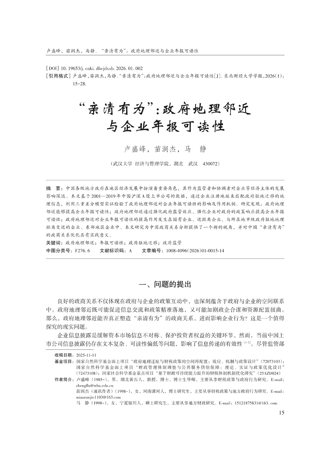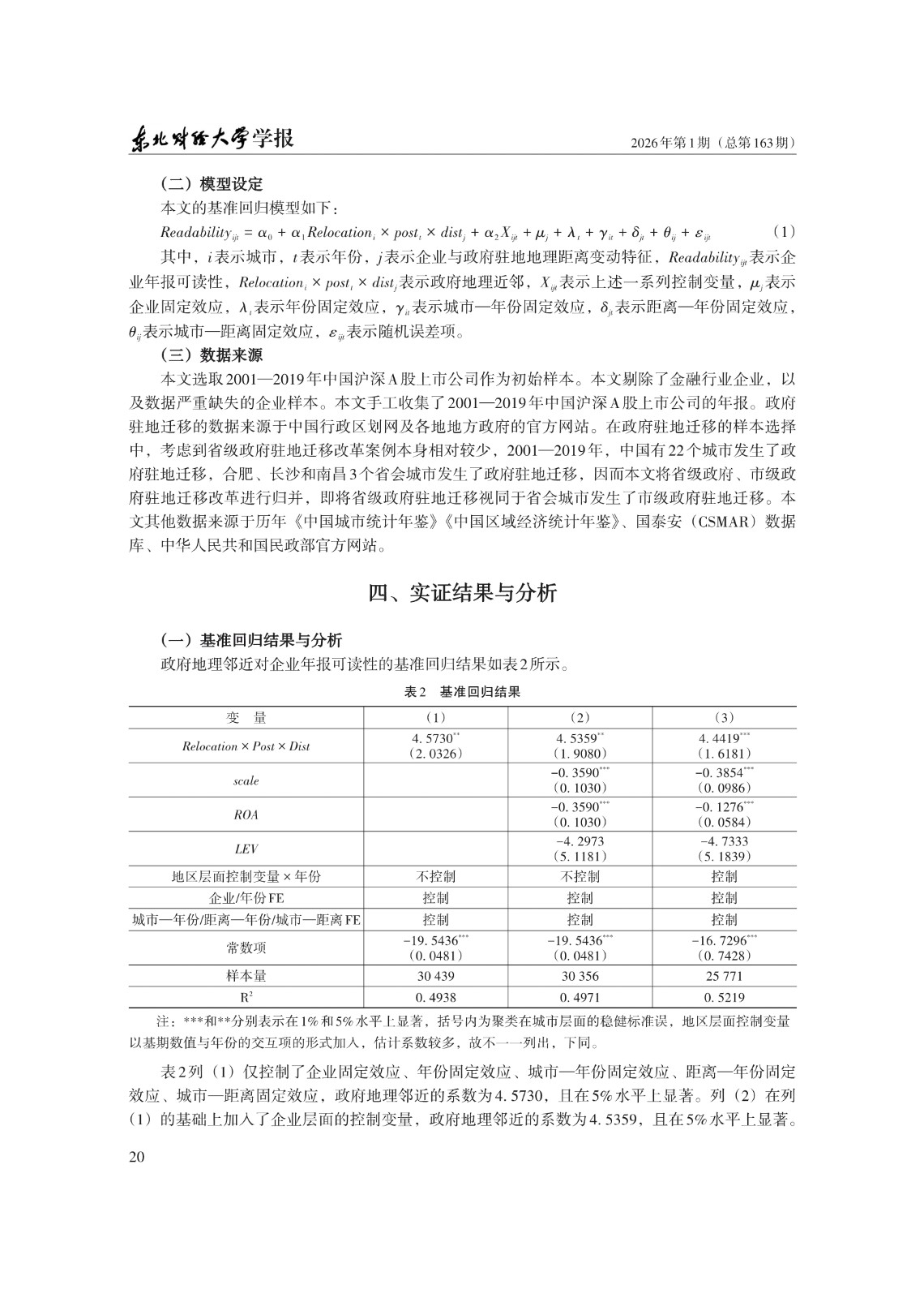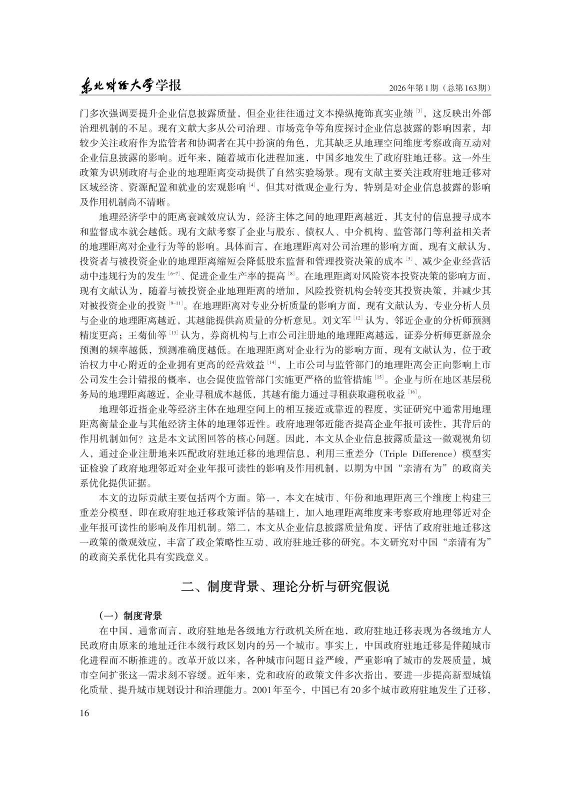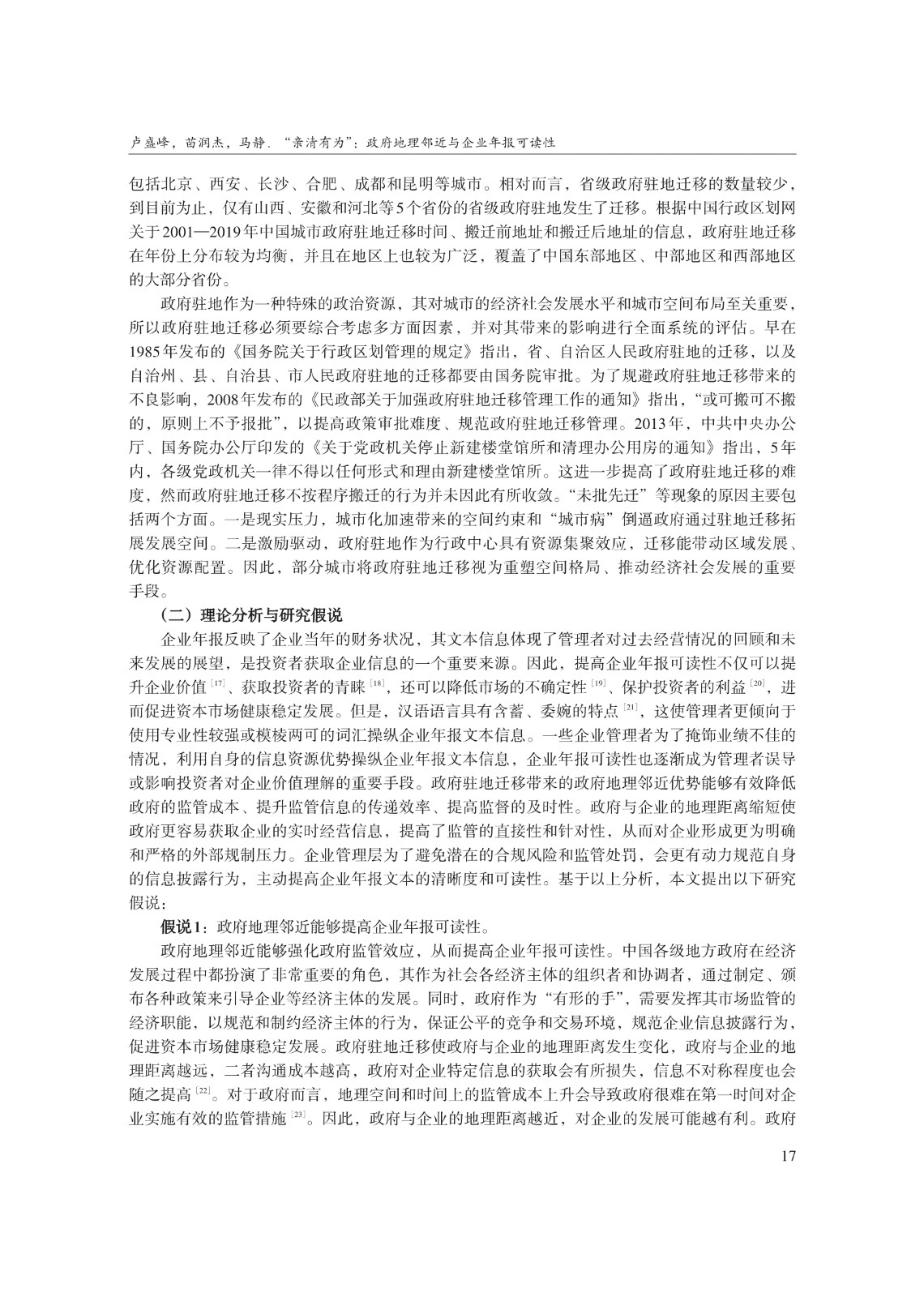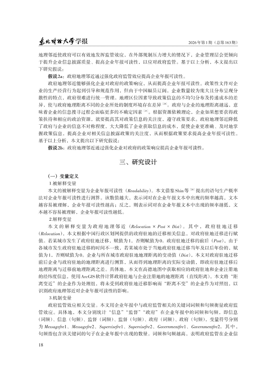 关键词: 政府地理邻近;年报可读性;政府驻地迁移;政府监管