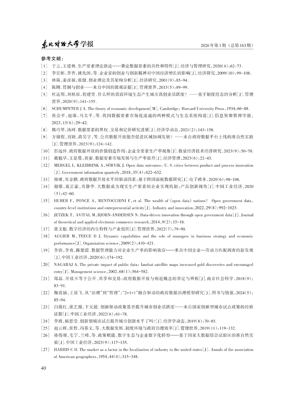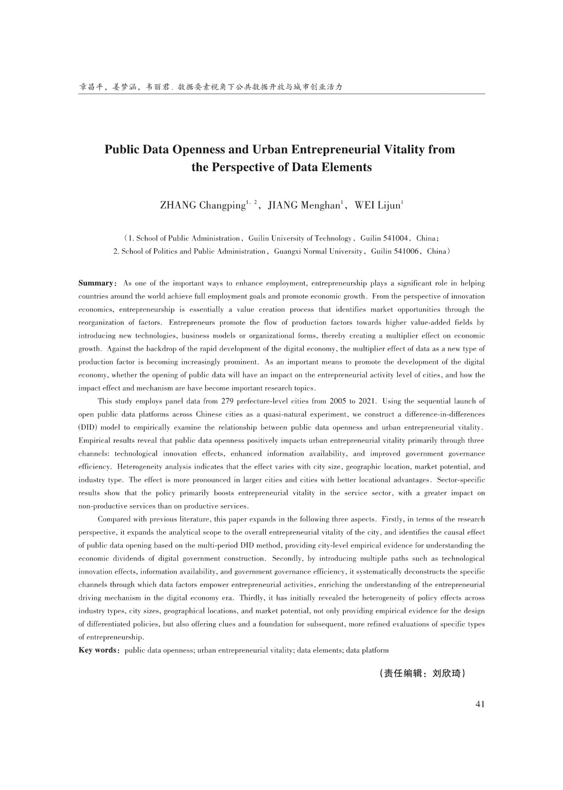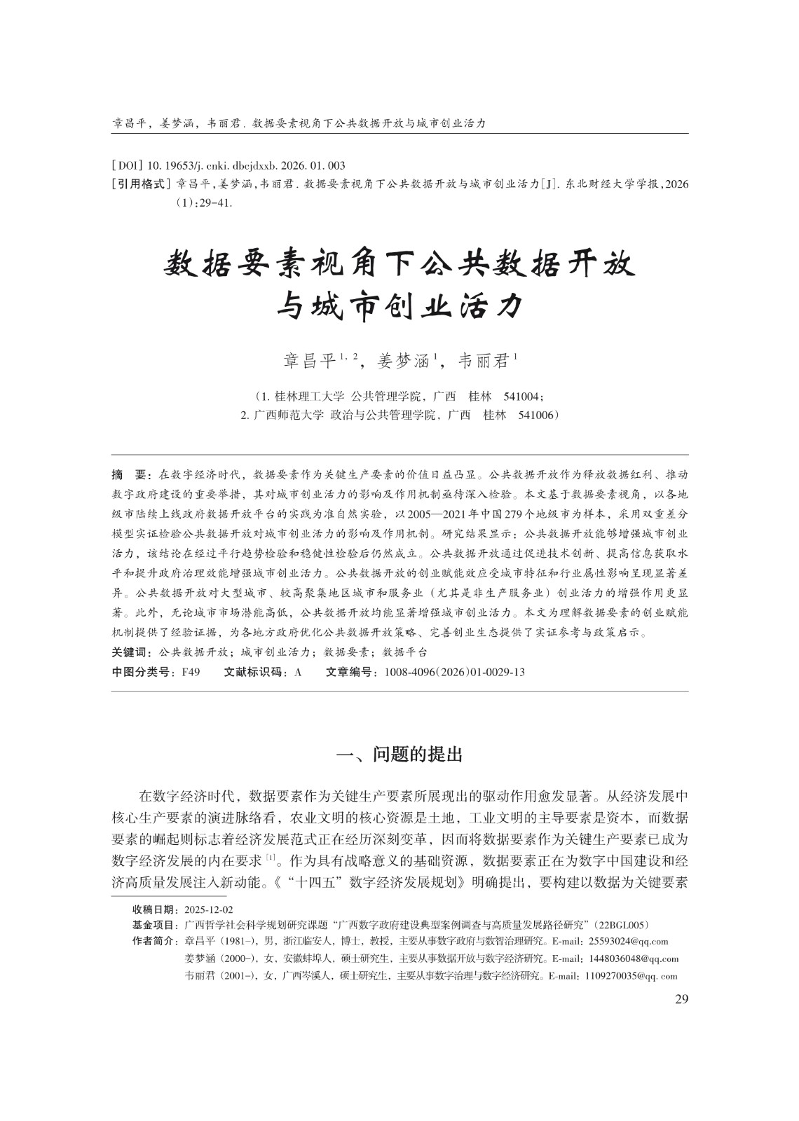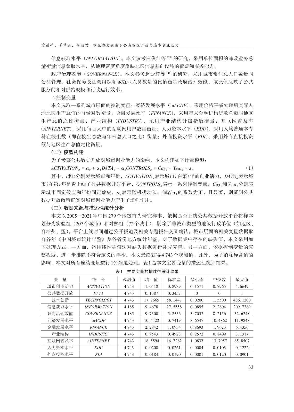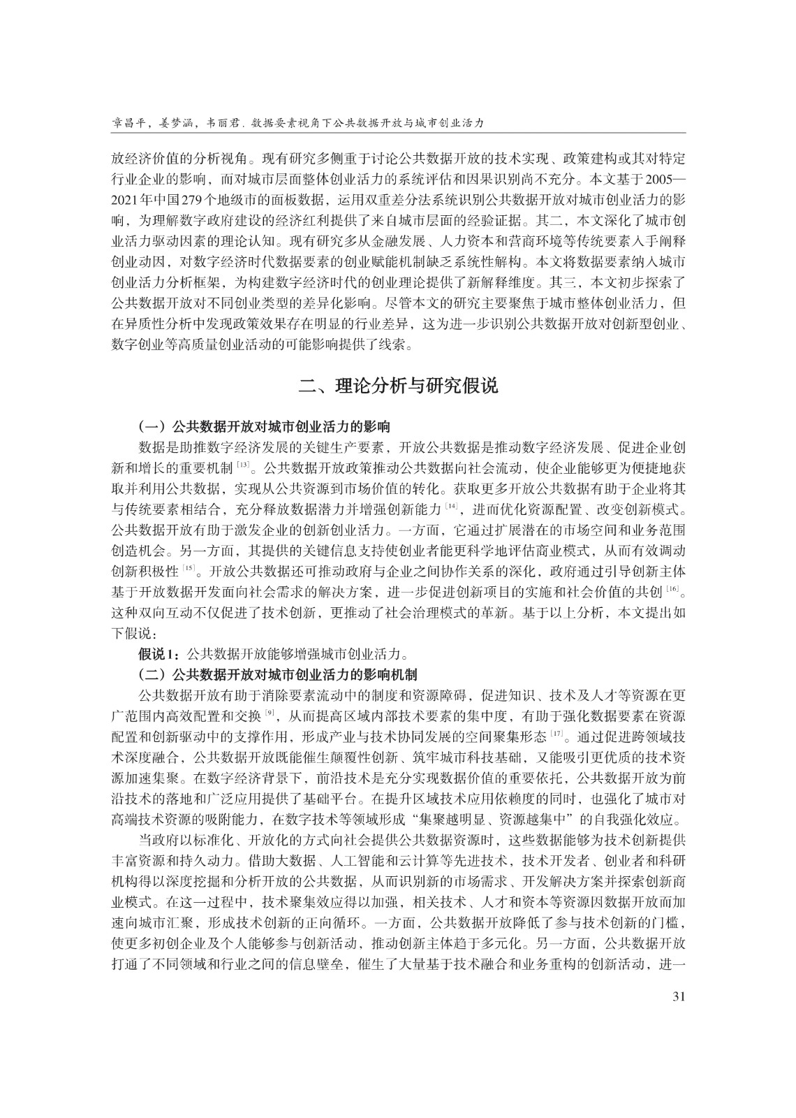 关键词: 公共数据开放;城市创业活力;数据要素;数据平台