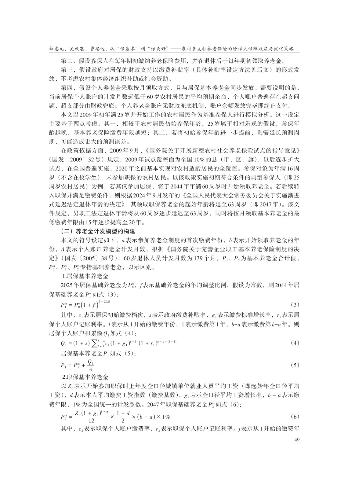 关键词: 农村养老保险;多支柱养老保险;阶梯式保障;养老保障水平
