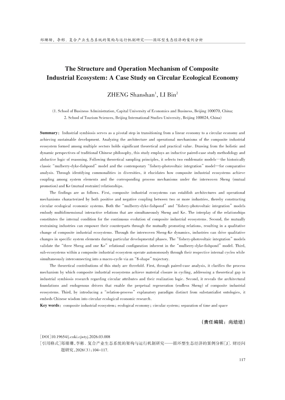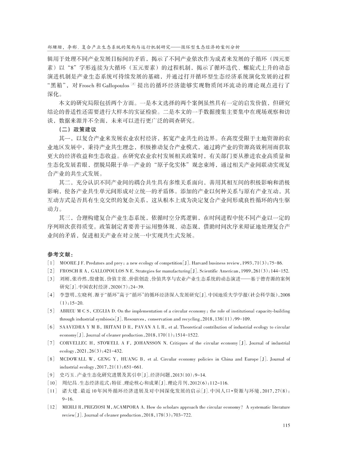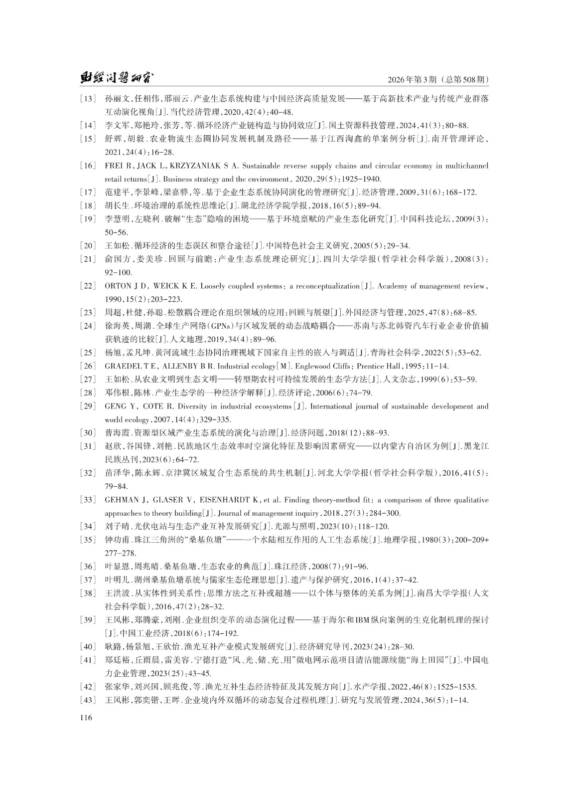 复合产业生态系统的架构与运行机制研究——循环型生态经济的案例分析